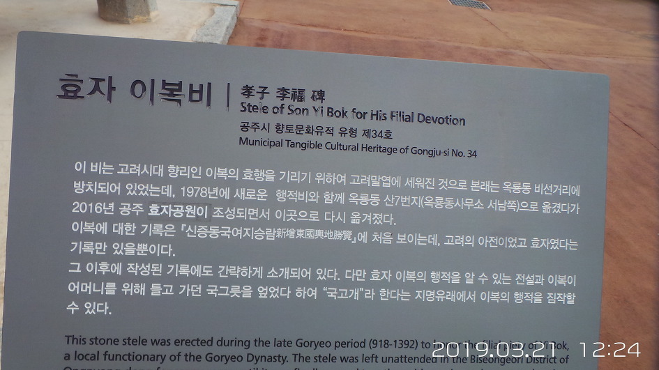 '효자이복지리(孝子李福之里)'는 효자 이복이 살았던 마을이라는 뜻.