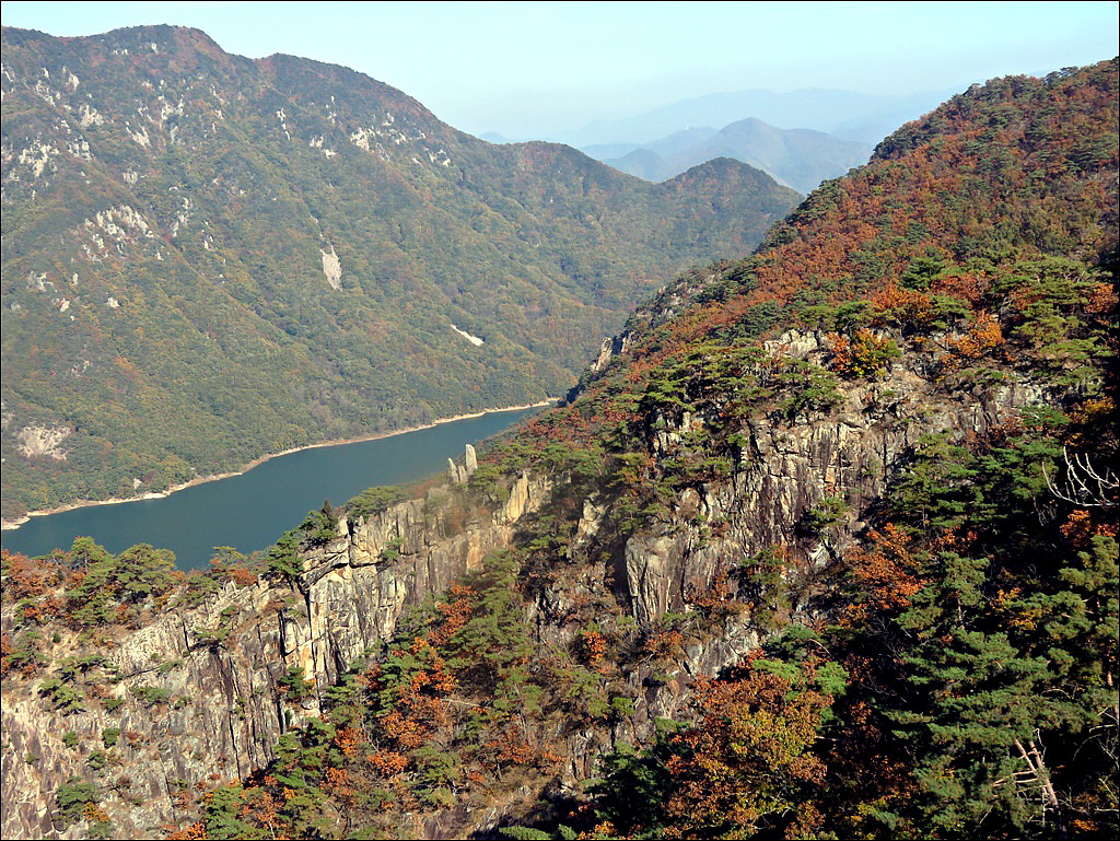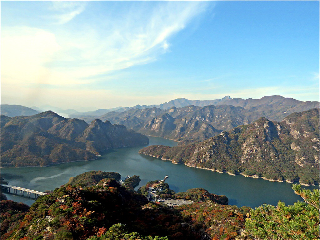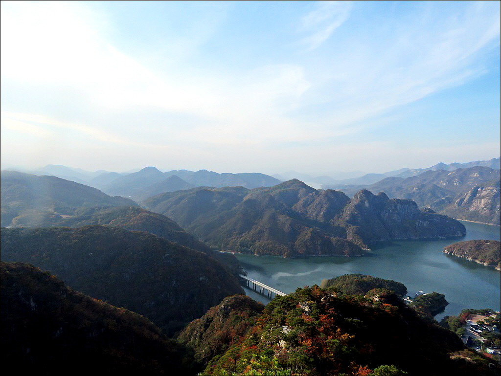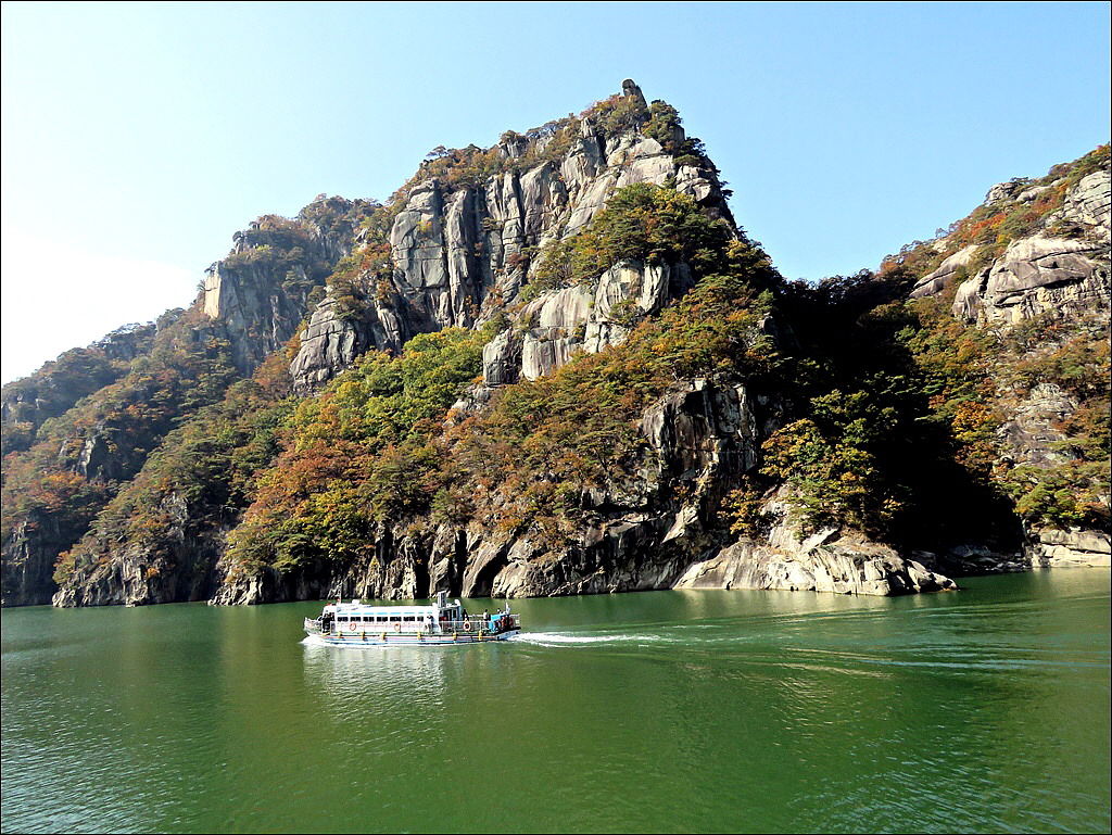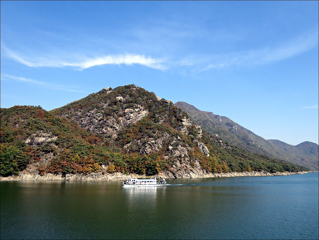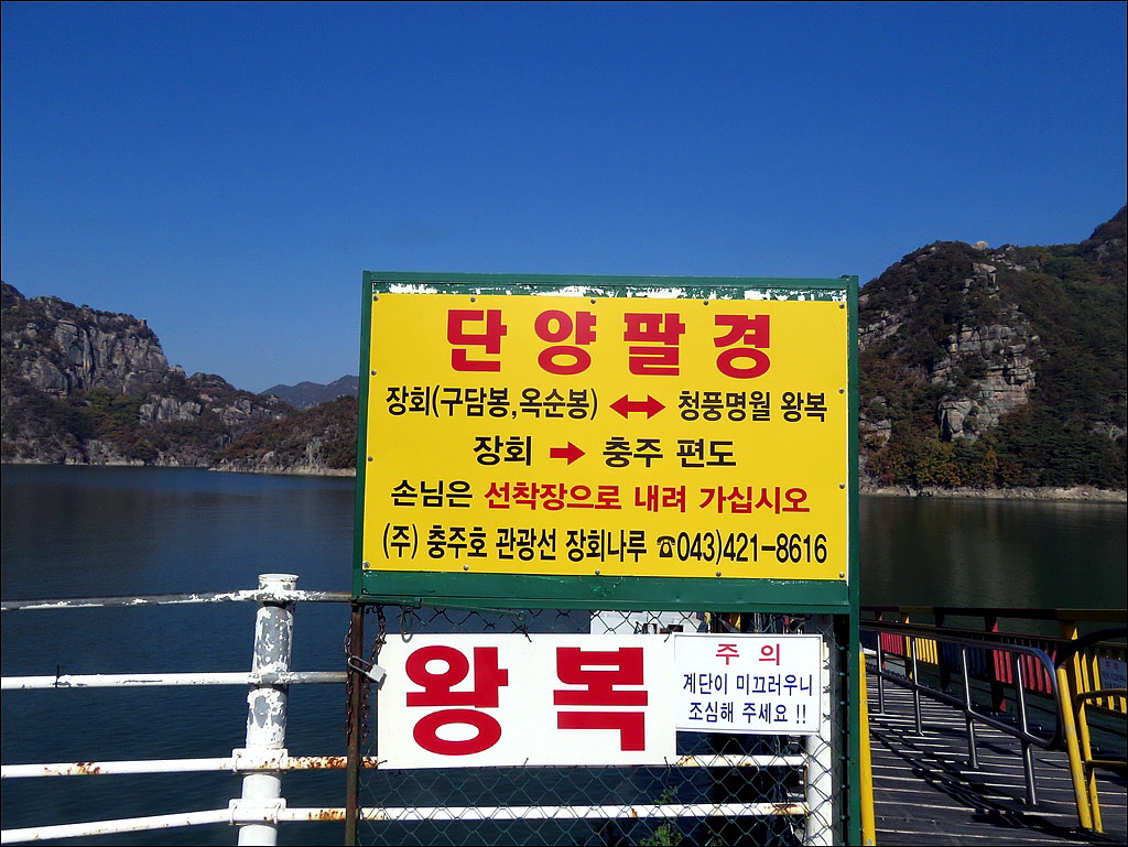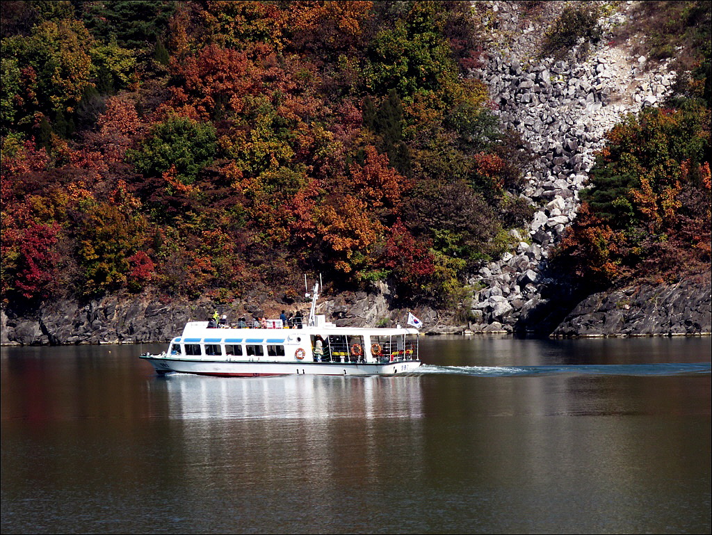 남한강을 단양과 충주 사람들은 충주호라 부르고 제천 사람들은 청풍호라 부른다. 충주호 청풍호수를 가운데 두고 주변에는 기라성 같은 명산들이 줄지위 에워싸고 있다. 대표적인것이 월악산 국립공원이다. 월악산을 축으로 반경 수십k 거의 모든 산들이 월악산 국립공원 권역이다. 월악산 금수산 가은산에서 동산 적성산 제비봉 구담 옥순 신선 미인봉 등곡 계명 대미 악어봉에서 충주호를 둘러산 많은 산들을 나는 다 탐방 해보았고 안가본 산은 육지속의 섬 이라는 비봉산 하나에 불과하다. 그 많은 산에서 헤일 수 없이 많이 내려다 보던 남한강 충주호 청풍호를 언젠가는 나도 유람선을 마지막으로 타보고 충주호 변방을 졸업 하든지 죽든지 해야지 하고 있었다. 지금이 유람선을 타고 단풍놀이를 하기 딱 좋은 계절이 아닌가? 이 시기를 놓치면 또 1년을 더 기다려야 한다.