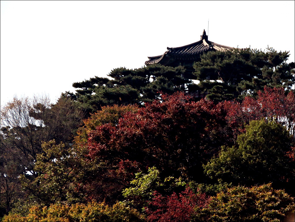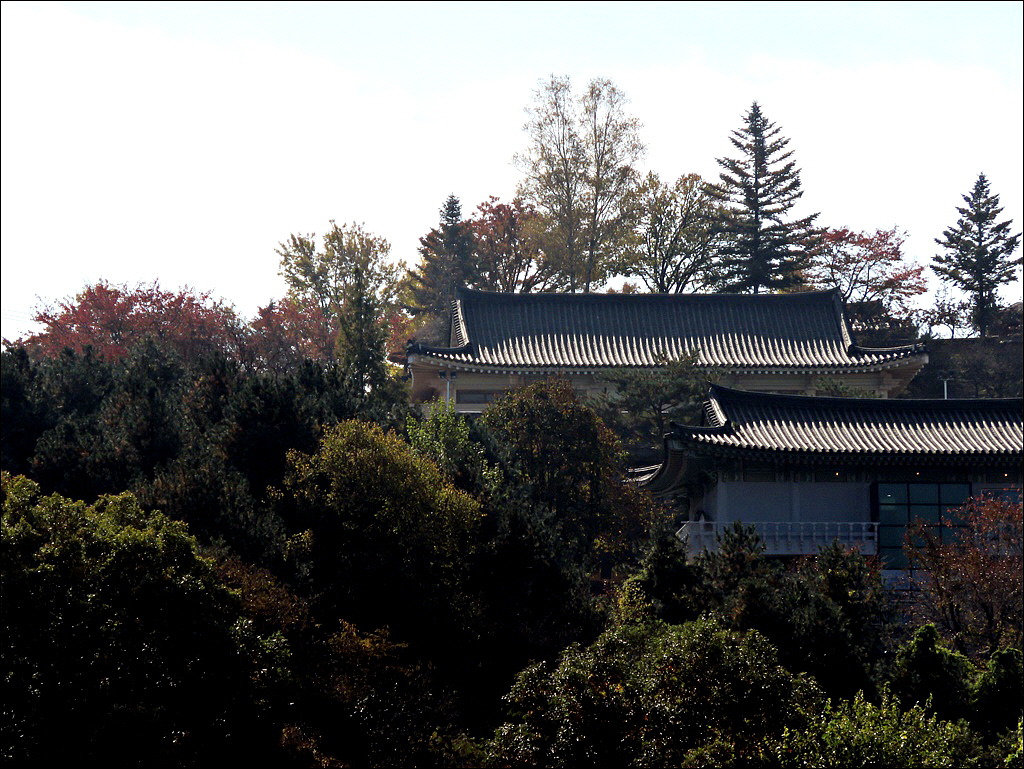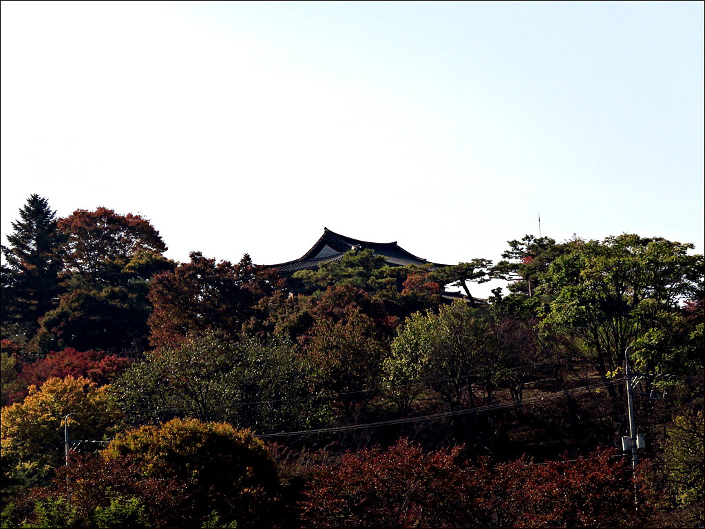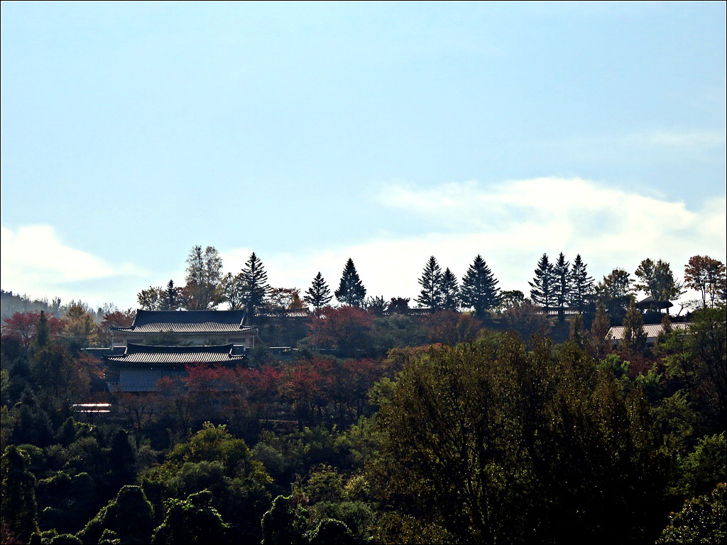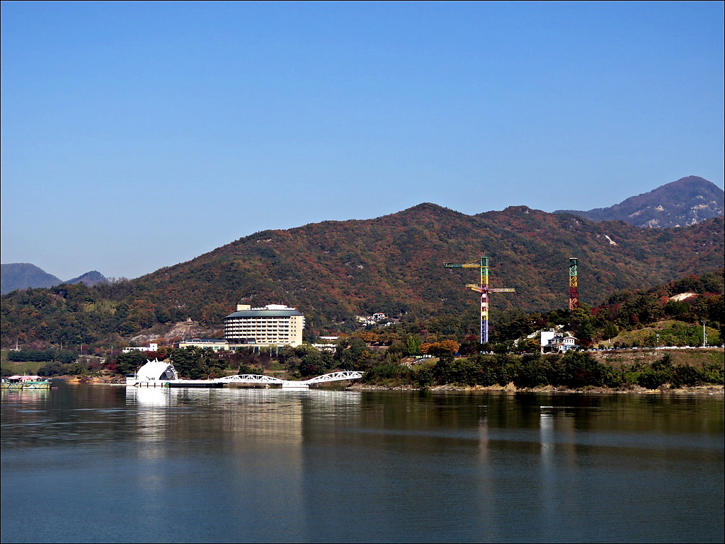 좌측으로 단풍이 불붙고 있는 청풍문화단지 시설