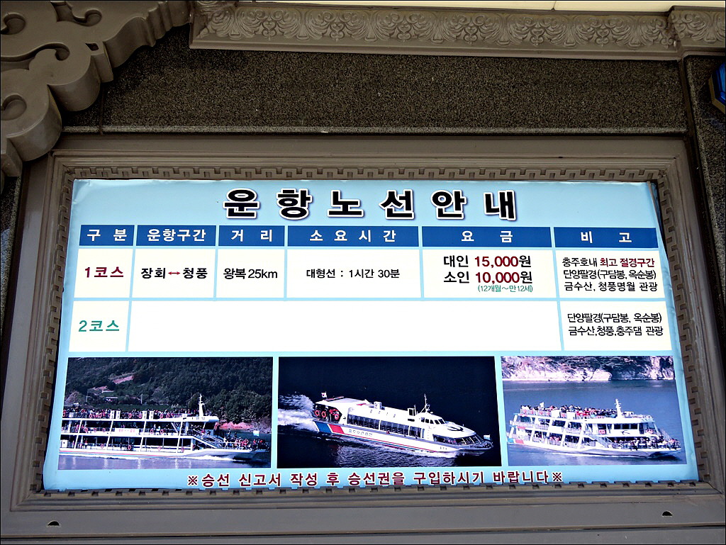 1시간30분 짜리 하선해서 돌아보는 청풍호 유람선 타고 있는 사람들은 청풍나루에서 타서 돌아가거나 새로 장회나루에서 청풍나루로 가기위해 승선한 사람들이다.