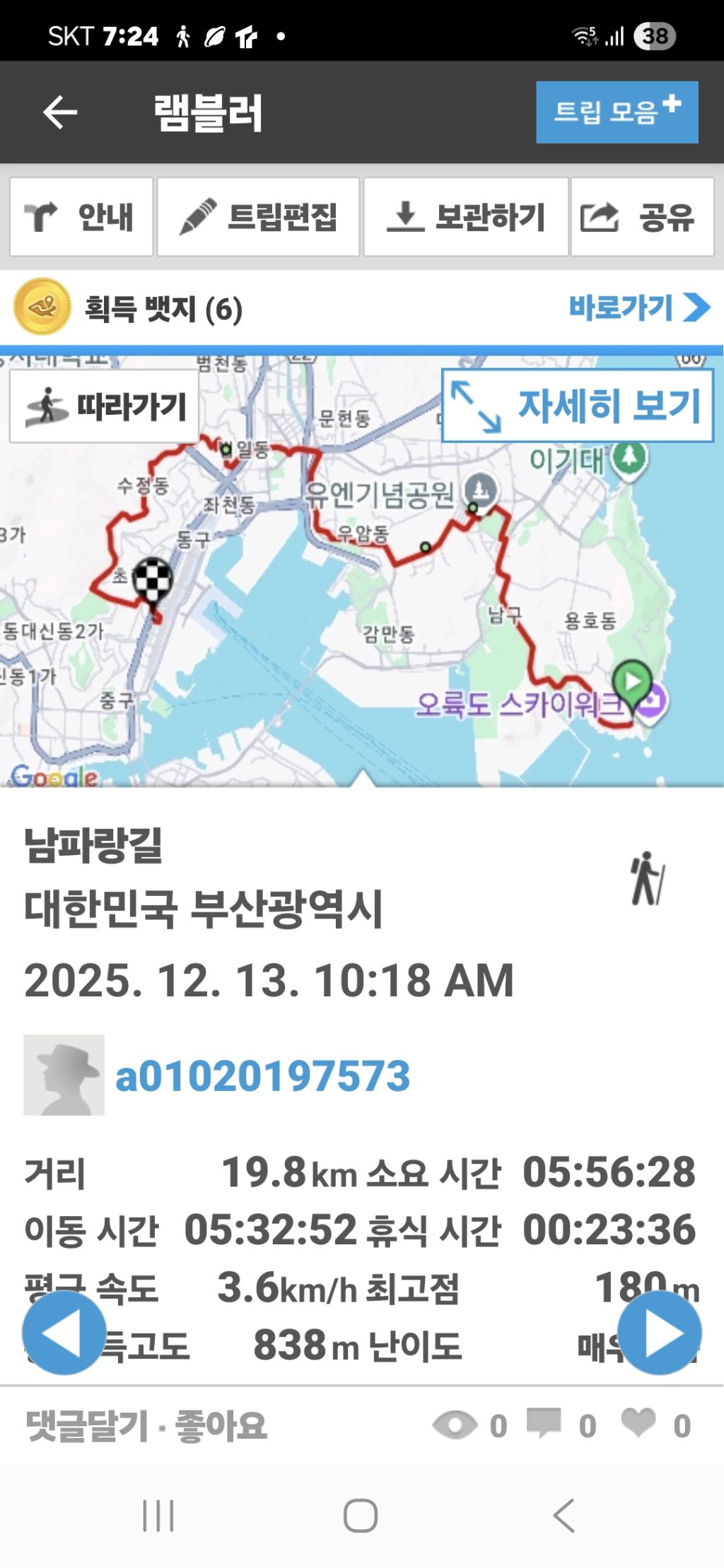남파랑길 1코스 작성자치술령|작성시간25.12.13|조회수65 목록 댓글 0 글자크기 작게가 글자크기 크게가 다음검색 현재 게시글 추가 기능 열기 북마크 공유하기 신고 센터로 신고 댓글 댓글 0 댓글쓰기 답글쓰기 댓글 리스트
