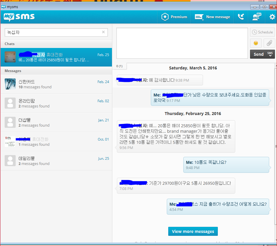 현재는 Mightytext라는 프로그램 사용합니다.(pc에서 전화걸기까지 가능)
