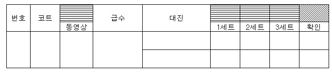 | 심판대 밑에 번호가 적힌 코팅지가 준비되어 있으니 게임이 바뀔때 마다 |