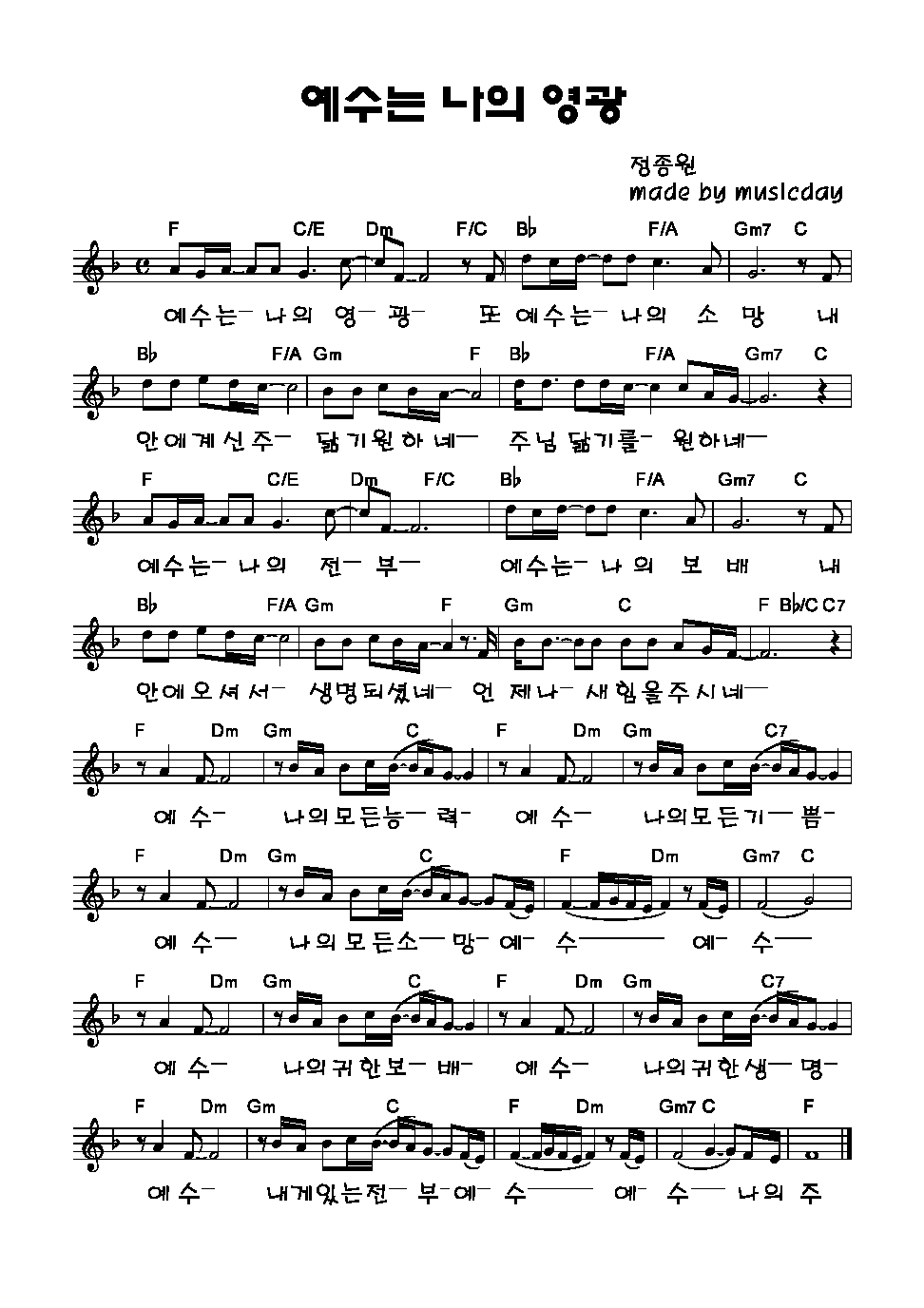 [스크랩] 예수는 나의 영광 / 어노인팅3 작성자하늘아기|작성시간06.08.26|조회수231 목록 댓글 0 글자크기 작게가 글자크기 크게가 사역자명 : 어노인팅앨범이름 : 3집 :기름부으심" 앨범구분 : Praise & Worship 앨범구입 : 어노인팅3집 구입 예수는 나의 영광 / 정종원 작사곡 예수는 나의 영광 또 예수는 나의 소망 내 안에 계신 주 닮기 원하네 주님 닮기를 원하네 에수는 나의 전부 예수는 나의 보배 내 안에 오셔서 생명 되셨네 언제나 새 힘을 주시네 (예수 나의 모든 능력 예수 나의 모든 기쁨 예수 나의 모든 소망 예수 예수) ()x3 나의 주 다음검색 스크랩 원문 : 찬양나라 현재 게시글 추가 기능 열기 북마크 공유하기 신고 센터로 신고 댓글 댓글 0 댓글쓰기 답글쓰기 댓글 리스트