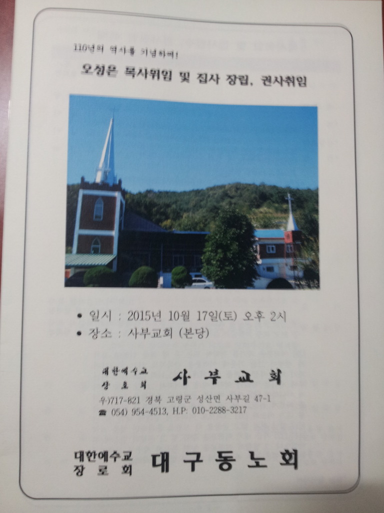 사부교회 110주년과 오성은 목사 위임식 작성자peace|작성시간15.10.18|조회수331 목록 댓글 0 글자크기 작게가 글자크기 크게가 다음검색 현재 게시글 추가 기능 열기 북마크 공유하기 신고 센터로 신고 댓글 댓글 0 댓글쓰기 답글쓰기 댓글 리스트