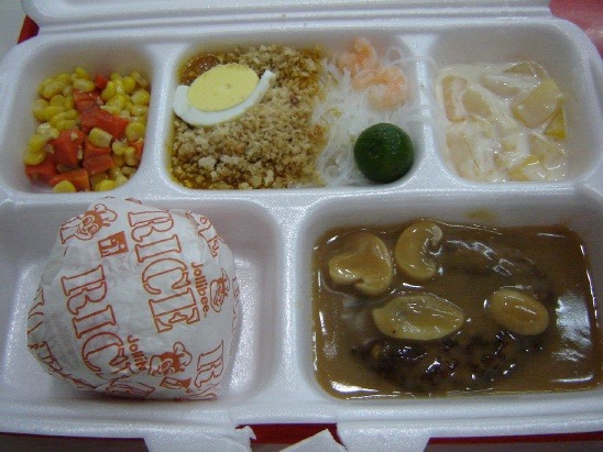 점심 무렵 로빈슨 몰 안의 졸리비에서 한끼 떼웠던 메뉴를 찍은 것...