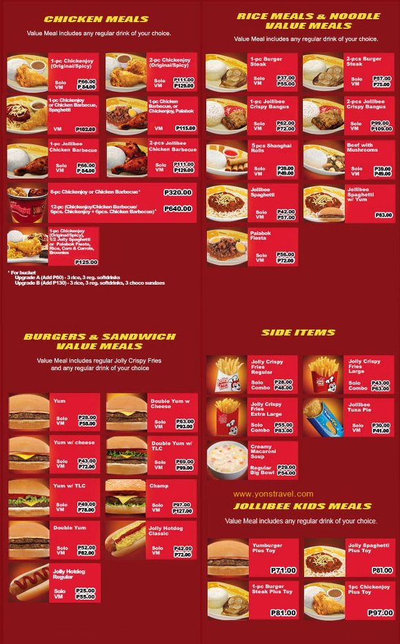 필리핀 사람의 입맛에 맞춰 제공되어지면서 패스트푸드 점이지만 버거뿐만 아니라 밥 종류 스파게티, 치킨,