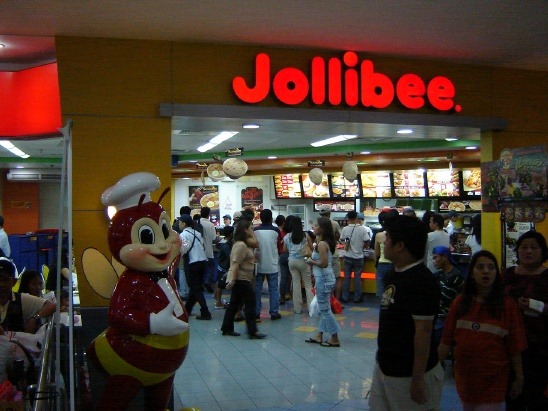 jolly + bee의 합성어인 jollibee는 빨간 꿀벌이 마스코트인 필리핀의 패스트푸 드점입니다.