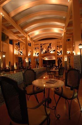 큰 야자나무와 비치가 보이는 전망, 그리고 핑크 빛의 벽채가 어우러진 파리 스타일의 바로써 칵테일과 차, 간단한 스넥 등을 제공합니다.