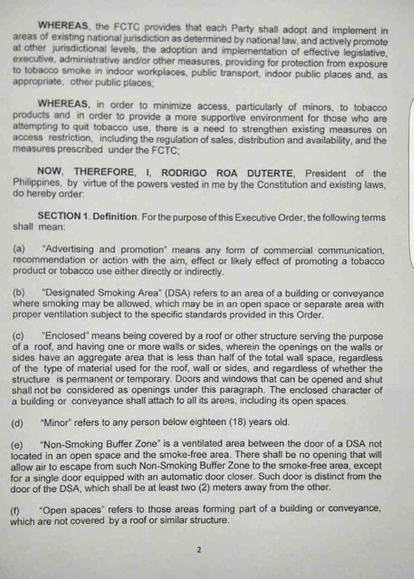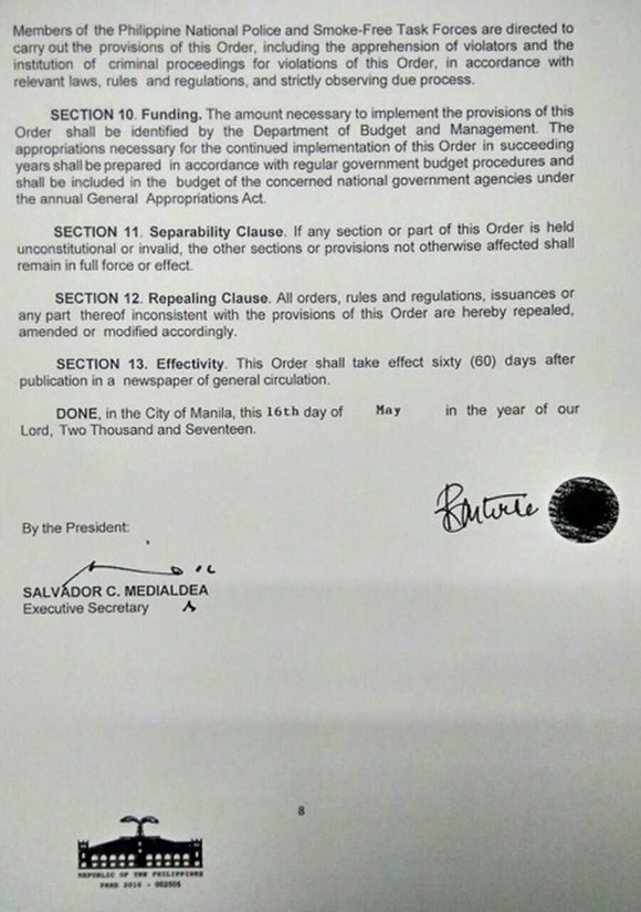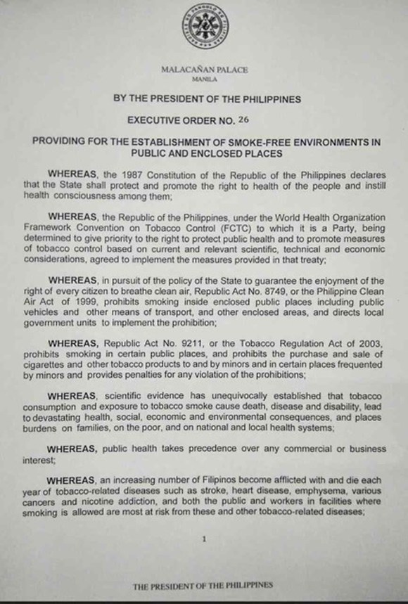 필리핀 흡연 금지 혹은 금연 정책은 예전부터 필리핀 특정 지역에서 시행이 됐던 점(다바오)이 있었으나 이번 금연 정책은 필리핀 전 지역으로 적용되는 정책인데요