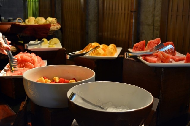 조식 메뉴는 기본 빵과 샐러드, 과일 종류는 물론 한식도 준비되어 있는데 심지어 떡볶이까지 있다.