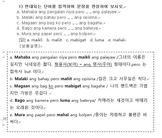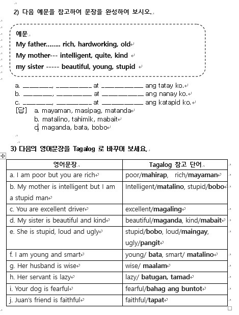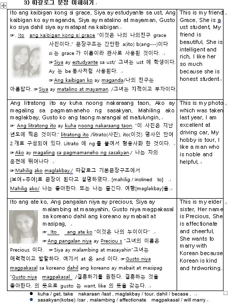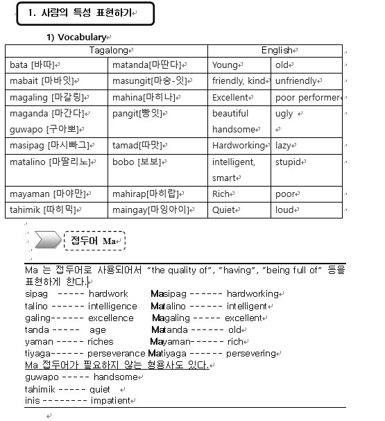 필리핀 언어 따갈로그어 “사람 사물 음식 특성 표현하기”