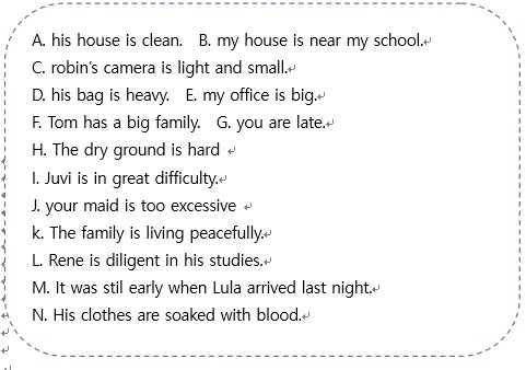 A~H 까지는 ay 가 없이 보어와 주어로 구성되었습니다.필리핀 언어는 영어보다 간단합니다
