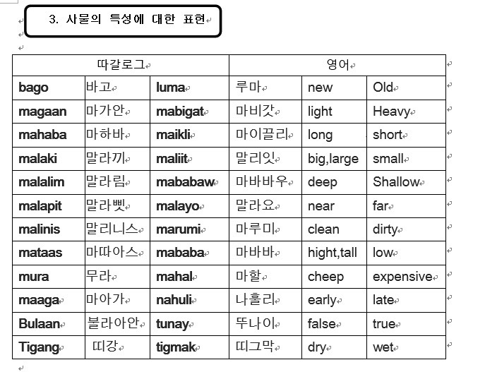 한번에 따갈로그어 단어를 다 습득하려하지 말고 반복적으로 학습하여 습득하기 바랍니다.