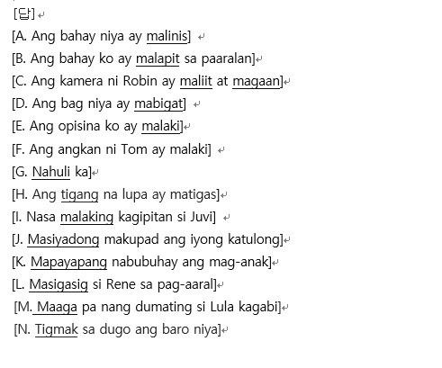 마찬가지로 필리핀 언어 역시 일정한 규칙이 있는 문장을 이해하기 위해서