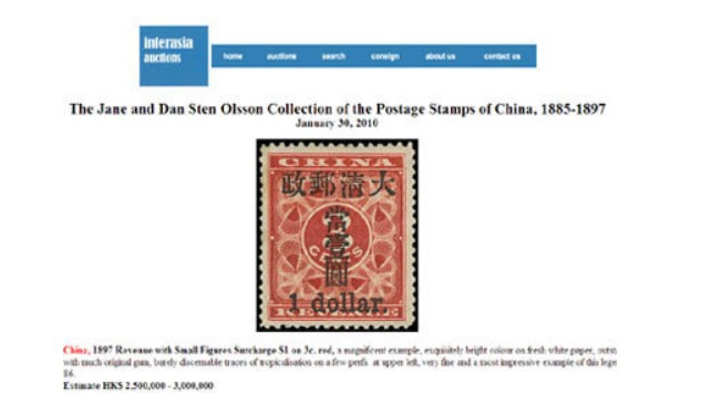 "Philately has a special place in Chinese culture, with rare stamps regarded as important cultural icons and treasures, just like art," auction house director Jeffrey Schneider said in the statement.
