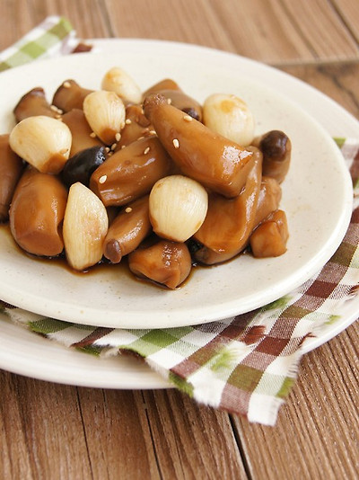 7~8분여 더 조려 새송이에 간이 배이고 마늘이 말랑하게 익으면 불을 끕니다.