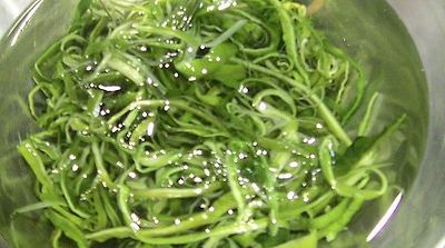 - Rinse in cold water, strain, cut them into bite size pieces, and set aside.