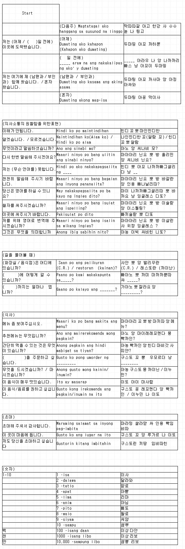 필리핀 여행시 필요한 간단한 단어 & 회화 작성자필마에|작성시간11.08.18|조회수594 목록 댓글 0 글자크기 작게가 글자크기 크게가 다음검색 현재 게시글 추가 기능 열기 북마크 공유하기 신고 센터로 신고 댓글 댓글 0 댓글쓰기 답글쓰기 댓글 리스트