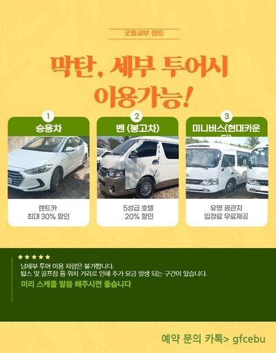 막탄, 세부 내 픽업 가능 (렌터카 대기장소 막탄)