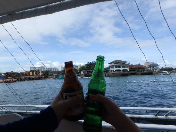 배에 타면 시원한 맥주와 음료로 반겨주시고.