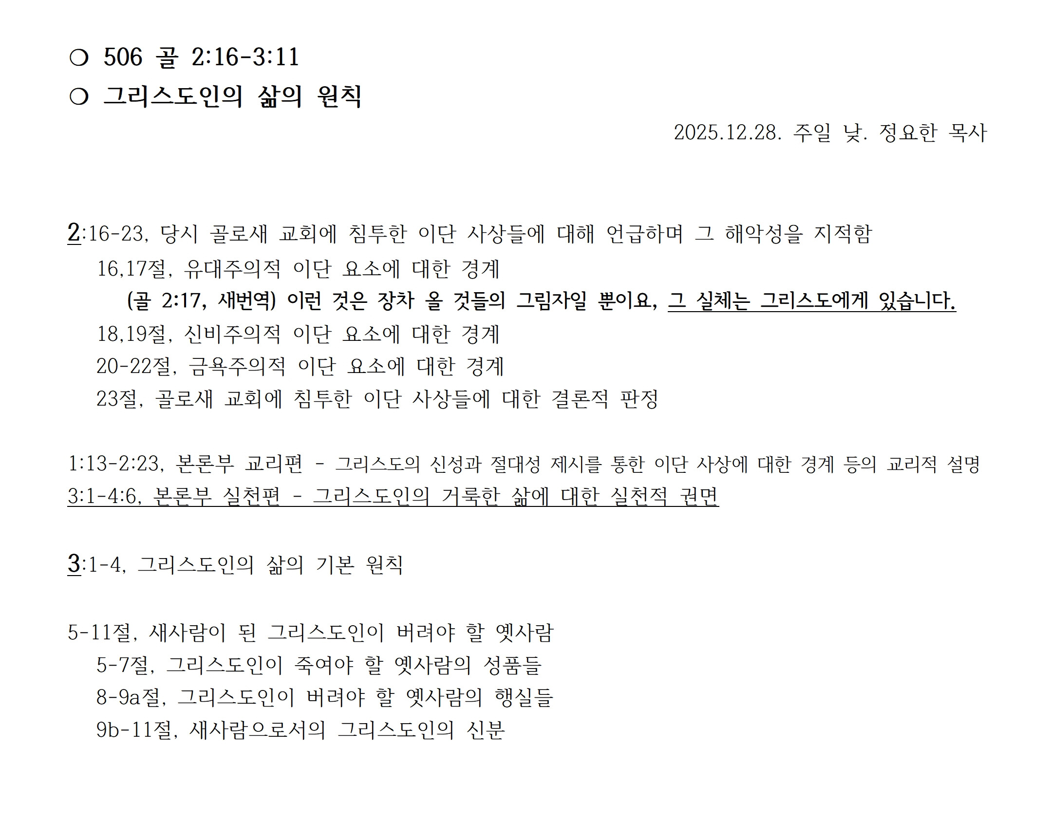 [대하설교] 506 골 2:16-3:11, 그리스도인의 삶의 원칙 작성자정요한목사|작성시간25.12.28|조회수101 목록 댓글 0 글자크기 작게가 글자크기 크게가 지난주일 설교 복습성경책을 펴고 들으시기 바랍니다. 다음검색 현재 게시글 추가 기능 열기 북마크 공유하기 신고 센터로 신고 댓글 댓글 0 댓글쓰기 답글쓰기 댓글 리스트