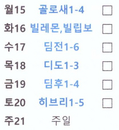 [매일성경읽기] 이번주간은 ‘골로새서 1장’ 부터입니다. 작성자정요한목사|작성시간25.12.14|조회수16 목록 댓글 0 글자크기 작게가 글자크기 크게가 [매일성경읽기] 이번주간은 ‘골로새서 1장’ 부터입니다.(①주기도문 ②찬양 ③성경읽기 ④개인기도) 다음검색 현재 게시글 추가 기능 열기 북마크 신고 센터로 신고 댓글 댓글 0 댓글쓰기 답글쓰기 댓글 리스트