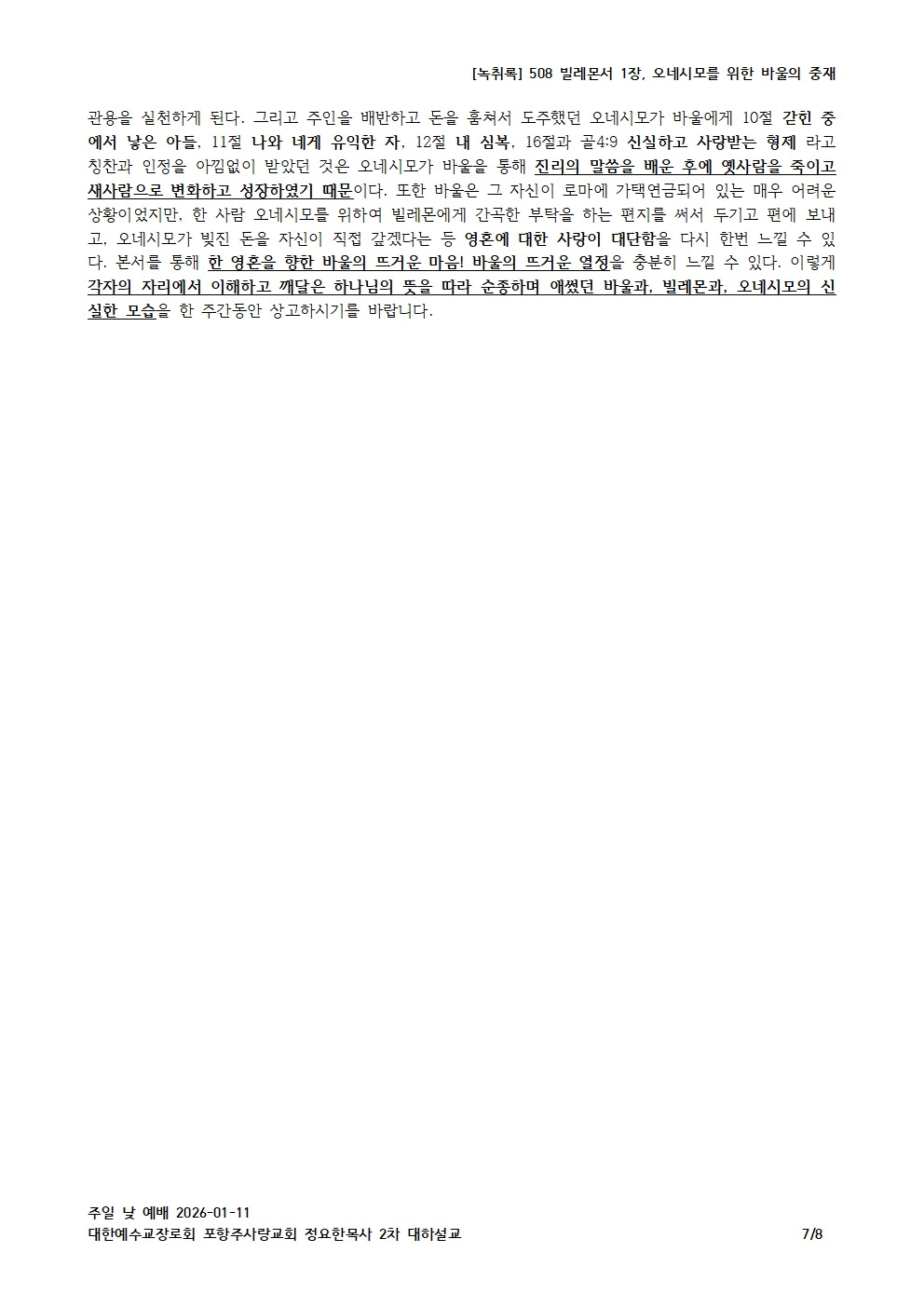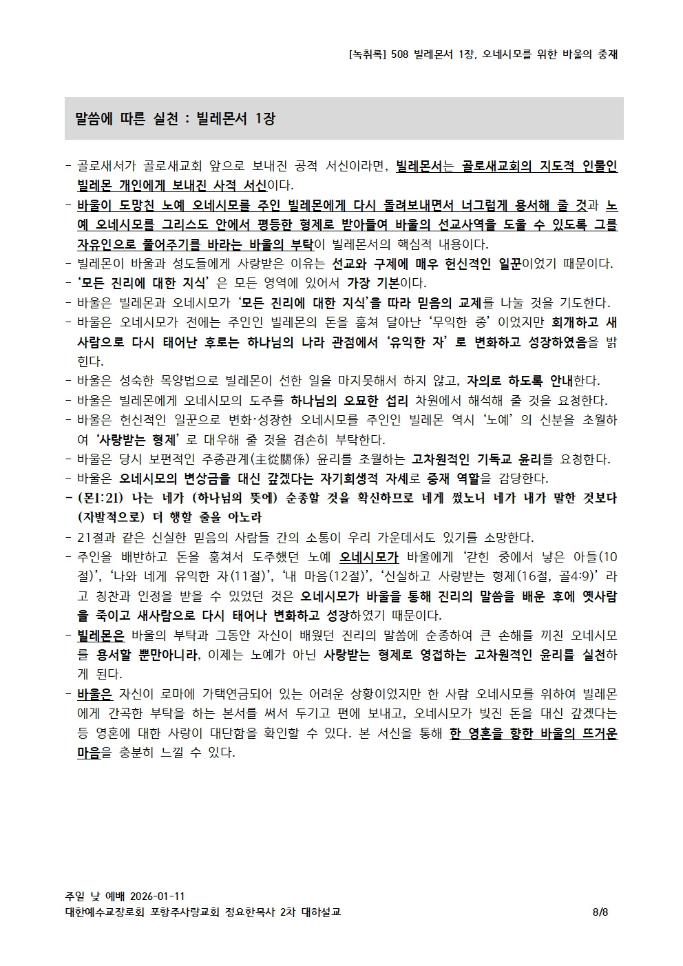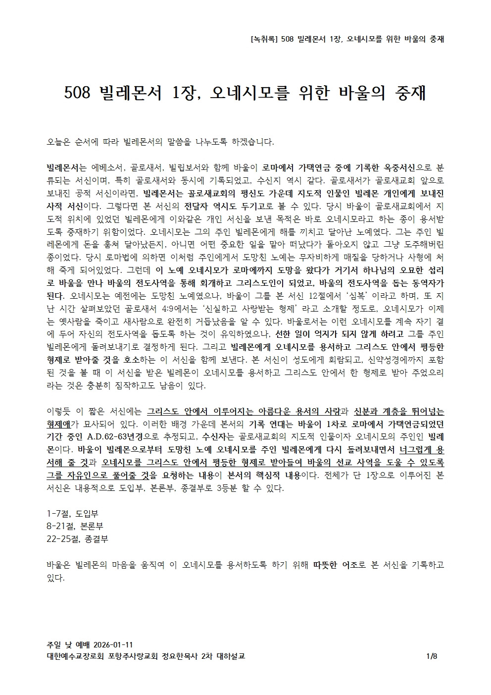 [녹취록] 508 몬 1장, 오네시모를 위한 바울의 중재 작성자곽인나집사|작성시간26.04.11|조회수20 목록 댓글 0 글자크기 작게가 글자크기 크게가 [녹취록] 508 빌레몬서 1장, 오네시모를 위한 바울의 중재.pdf253.46KB 첨부파일첨부된 파일이 9개 있습니다. jpg 파일 [녹취록] 508 빌레몬서 1장, 오네시모를 위한 바울의 중재001.jpg 다운로드 jpg 파일 [녹취록] 508 빌레몬서 1장, 오네시모를 위한 바울의 중재003.jpg 다운로드 jpg 파일 [녹취록] 508 빌레몬서 1장, 오네시모를 위한 바울의 중재002.jpg 다운로드 jpg 파일 [녹취록] 508 빌레몬서 1장, 오네시모를 위한 바울의 중재004.jpg 다운로드 jpg 파일 [녹취록] 508 빌레몬서 1장, 오네시모를 위한 바울의 중재007.jpg 다운로드 jpg 파일 [녹취록] 508 빌레몬서 1장, 오네시모를 위한 바울의 중재008.jpg 다운로드 jpg 파일 [녹취록] 508 빌레몬서 1장, 오네시모를 위한 바울의 중재006.jpg 다운로드 jpg 파일 [녹취록] 508 빌레몬서 1장, 오네시모를 위한 바울의 중재005.jpg 다운로드 pdf 파일 [녹취록] 508 빌레몬서 1장, 오네시모를 위한 바울의 중재.pdf 다운로드 다음검색 현재 게시글 추가 기능 열기 북마크 신고 센터로 신고 댓글 댓글 0 댓글쓰기 답글쓰기 댓글 리스트