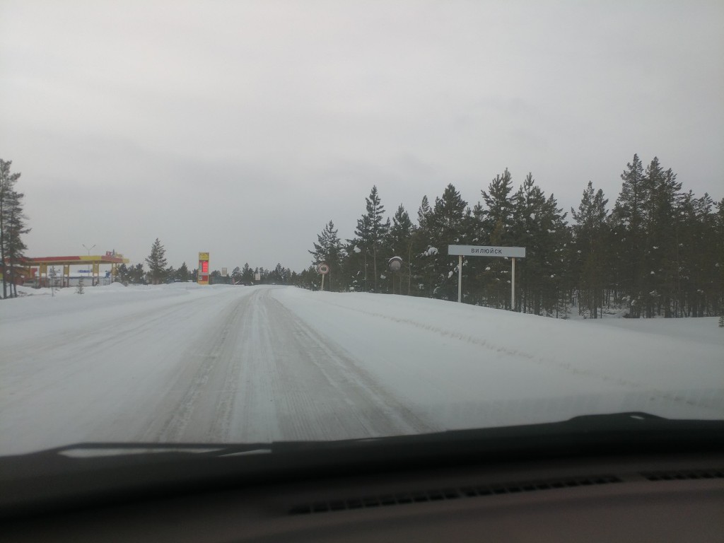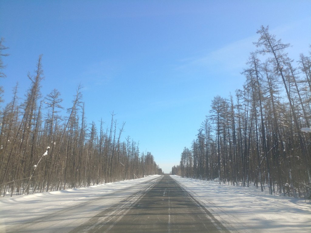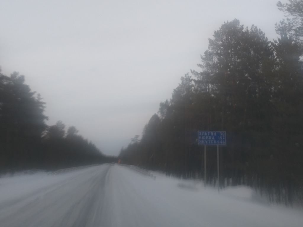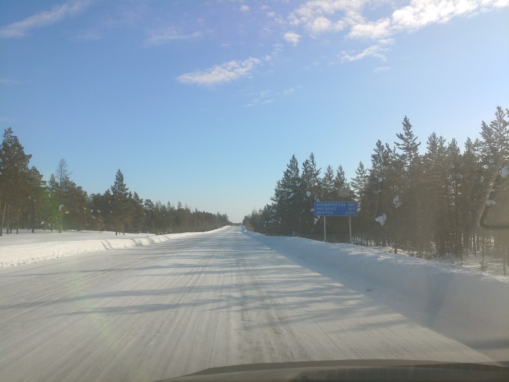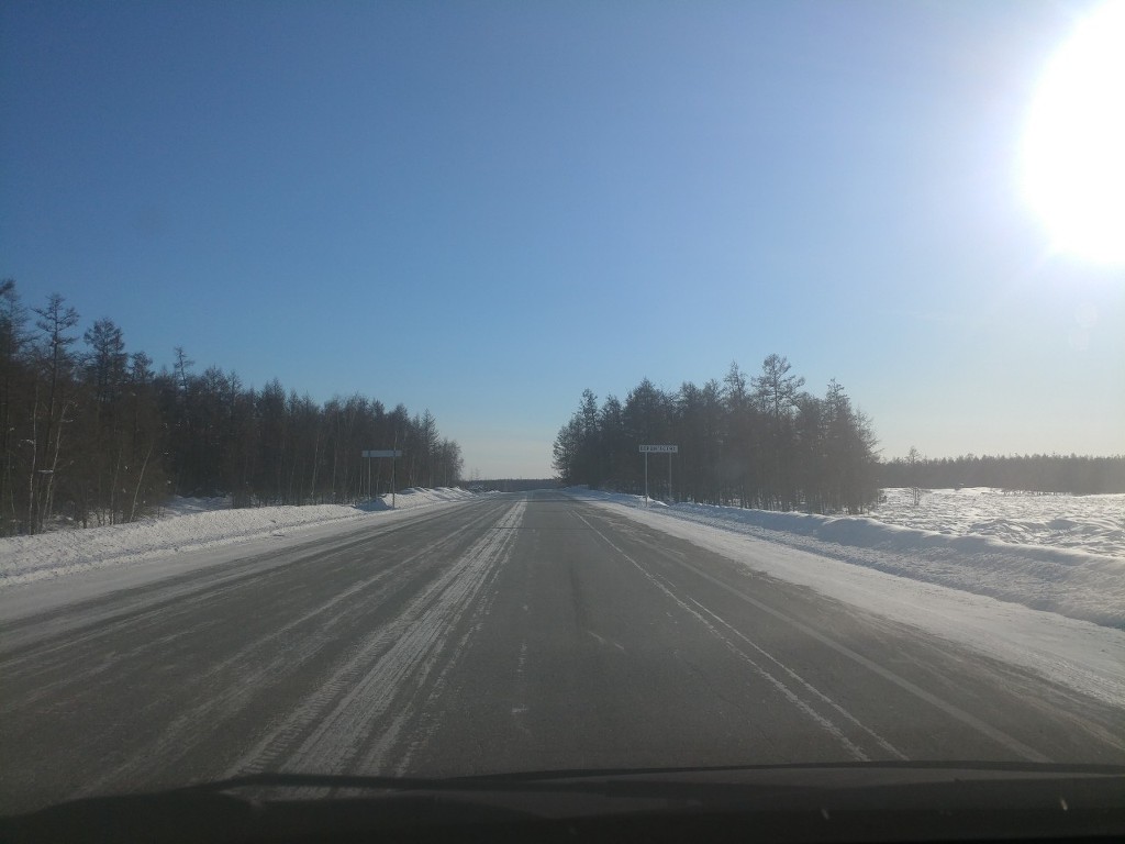돌아오는 길에 찍은 도로(야쿠츠크 570km남음)