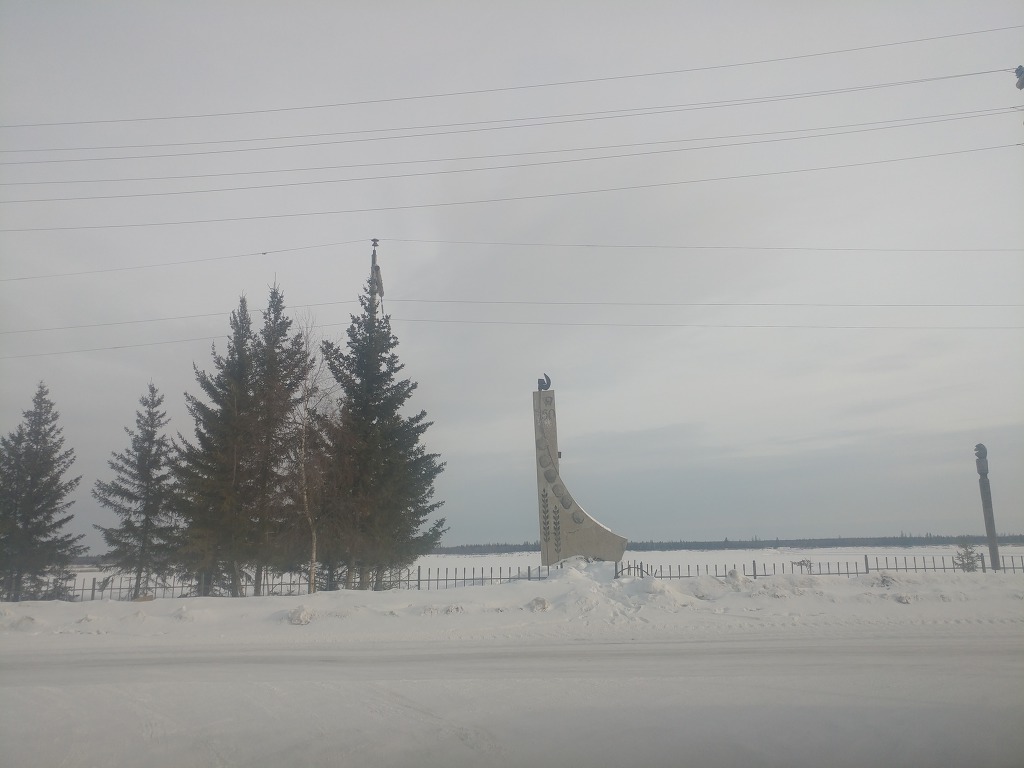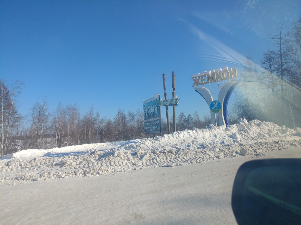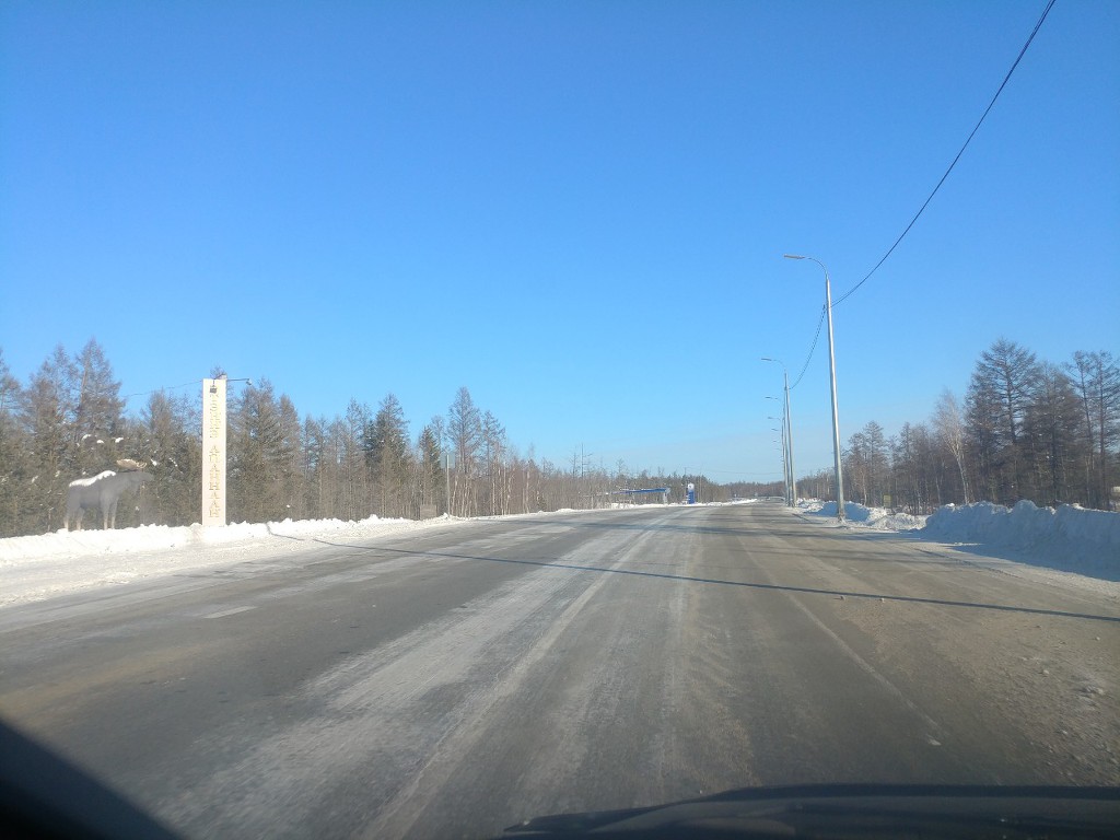 07시21분 시내를 벗어나서 60km를가면 고르느이 군과 야쿠티아의 경계지점 도착.