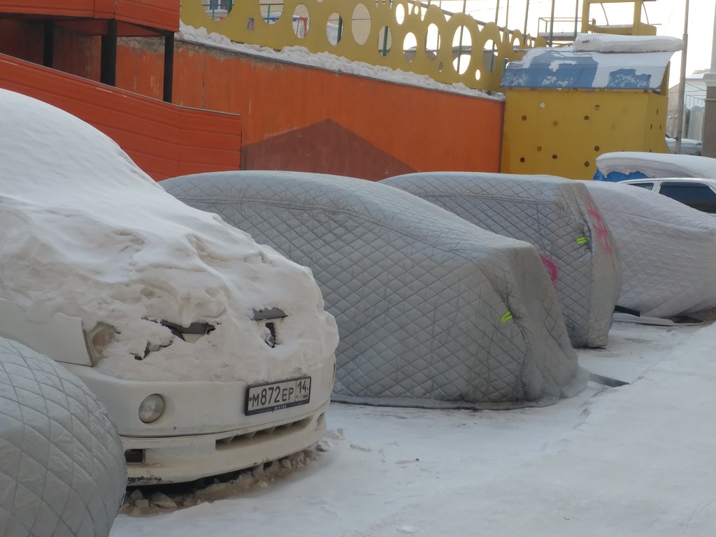 야쿠티아는 이렇게 자동차를 덮어놓지 않으면 엔진이 얼어서 시동이 걸리지 않는다.