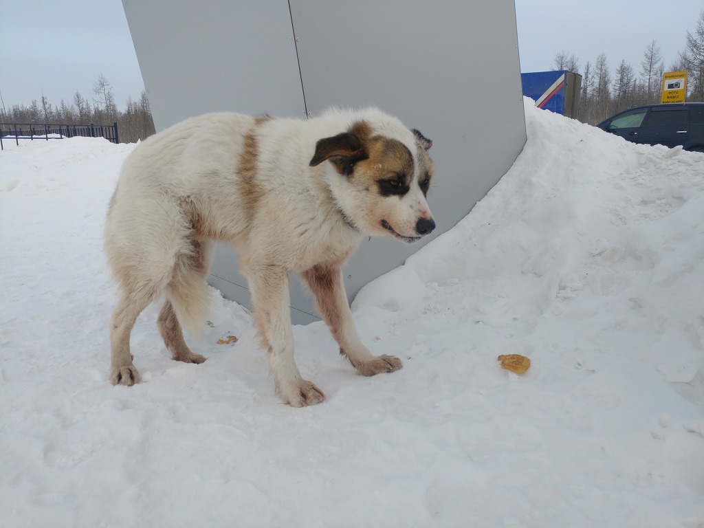 우리가 도착하자 떠돌이개는 미리알고 떡을 먹으랴고 가까이왔다.