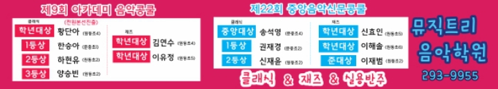 2019년 상반기 작성자뮤직트리|작성시간19.02.12|조회수117 목록 댓글 0 글자크기 작게가 글자크기 크게가 축하합니다~~ 다음검색 현재 게시글 추가 기능 열기 북마크 공유하기 신고 센터로 신고 댓글 댓글 0 댓글쓰기 답글쓰기 댓글 리스트