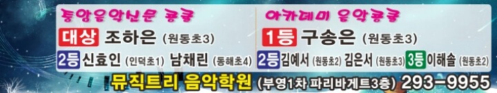 2015년 상반기 작성자뮤직트리|작성시간16.08.24|조회수49 목록 댓글 0 글자크기 작게가 글자크기 크게가 입상을 축하합니다 다음검색 현재 게시글 추가 기능 열기 북마크 공유하기 신고 센터로 신고 댓글 댓글 0 댓글쓰기 답글쓰기 댓글 리스트