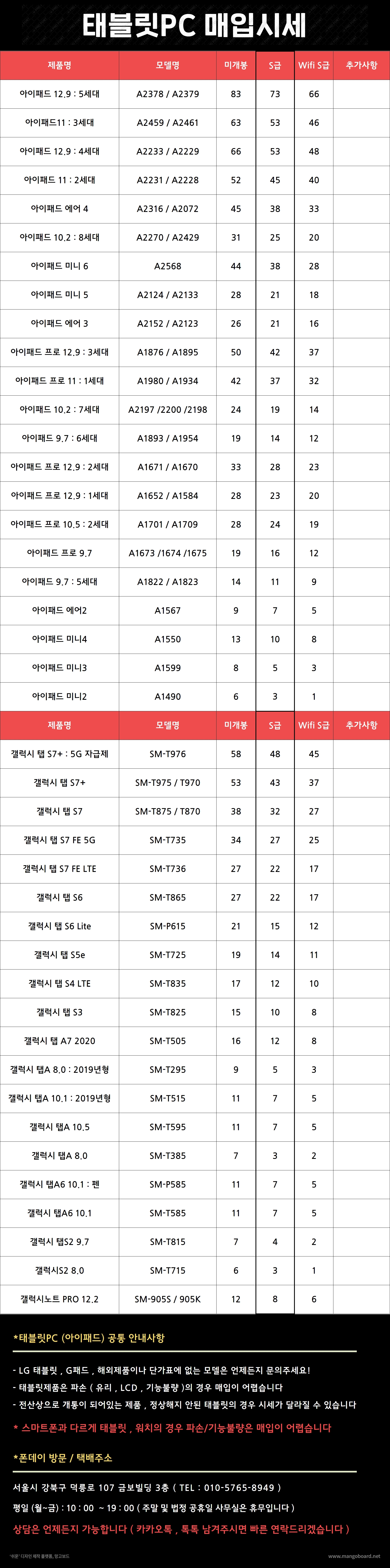 [22.06.10] 아이패드 갤럭시탭 보상매입 시세표 작성자폰데이본점|작성시간22.06.10|조회수124 목록 댓글 0 글자크기 작게가 글자크기 크게가 다음검색 현재 게시글 추가 기능 열기 북마크 공유하기 신고 센터로 신고 댓글 댓글 0 댓글쓰기 답글쓰기 댓글 리스트