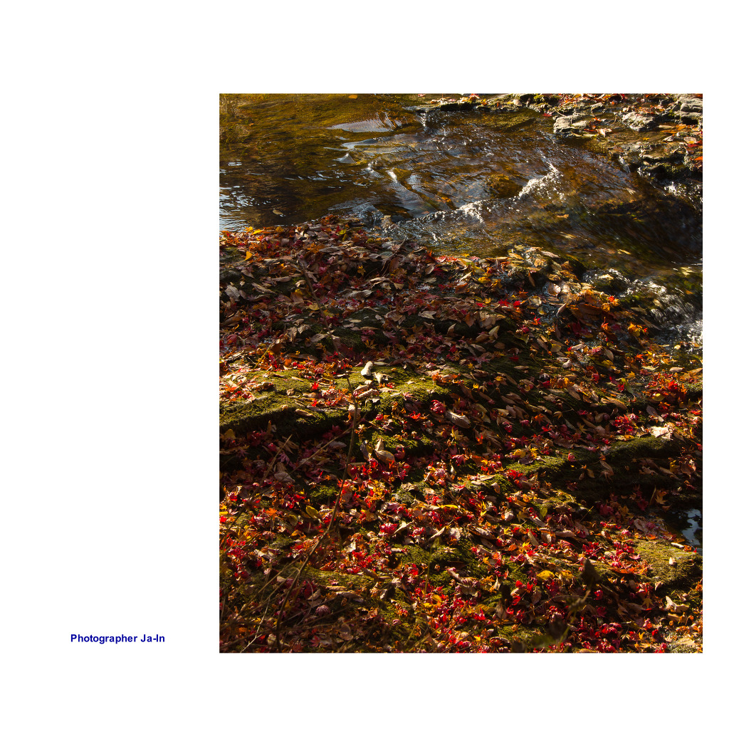 숲으로 가는 계단길,단풍잎 쌓인 계곡, 깊은 가을 정취가 가득합니다.