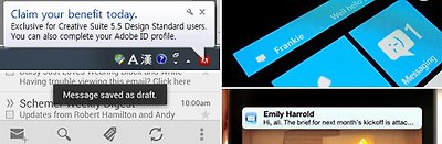 특정 상황에서만 제공되는 컨트롤입니다. 위에서 정의한 컨텍스트 메뉴와도 맥락이 유사한데, 팝업 형태가 아닌 다양한 방식으로 사용될 수 있다는 점이 다릅니다. 위의 화면처럼 사진 상단에 있는 메뉴 버튼은 평소에는 나타나지 않다가 마우스 포인터를 해당 사진 영역 안에 옮기는 순간 나타납니다. 리치 인터페이스 디자인 서적에서는 '마우스오버 노출도구' 라고도 정의하였는데 포함되는 개념입니다. 혹은 Gmail에서 삭제, 스팸처리 등의 메뉴는 메일 리스트를 선택(Check)하였을 시에만 제공되는데요, 이렇게 상황에 맞게 그때 그때 나타나는 메뉴를 부르는 용어입니다.