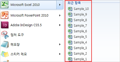 MRU 리스트 개념을 메뉴에 도입한 방식으로, 사용자의 검색 히스토리나 빈도수가 높은 항목들을 메뉴에 우선적으로 나타나게 하는 것을 말합니다. 위 화면과 같이 자주 쓰는 메뉴만 보여지며 확장 버튼을 눌러 모든 메뉴를 확인할 수 있습니다. MS Office Tool 2000, 2003에서 기본 설정으로 제공되다가 리본 메뉴가 출현하면서 현재는 폐기되었습니다.