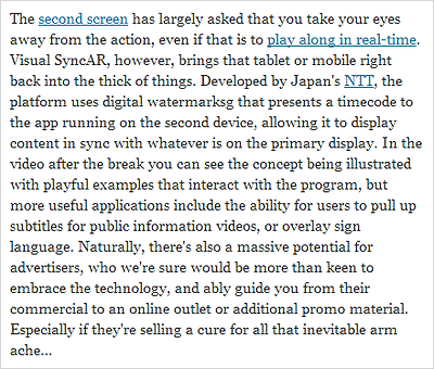 기대하지 않은 곳에 이용자가 관심 있어할 만한 키워드를 하이퍼링크 형태로 제공하는 것을 뜻합니다. 대표적인 예로 글의 본문에 특정 단어 혹은 구절에 링크가 있는 경우가 있으며, 좀 더 구조화된 방법으로 글 작성시 첨부하는 태그나 관련 제품 리스트 등을 나열하는 형태로 제공할 수 있는데요. 때론 글에 관련된 정보를 제공하기 위한 목적으로 사용되고, 사실 그보다 더 자주 상업적인 목적으로 사용됩니다. 기본적으로 인트리깅 브랜치는 이용자의 주의를 끌기 위해 존재하며 잘 사용되었을 때는 사이트에 오래 지속하는 효과를 가져다줍니다.적극적으로 링크를 눌러보는 호기심 많은 이용자 외에도 목적을 달성하고 빨리 완료하고자 하는 사람에게는 스쳐 지나갈 수 있게 설계하는 것이 무엇보다 중요합니다. 또한 인트리깅 브랜치로 관심을 끌려면 무엇을 링크할 것인지, 어떻게 관심을 끌 것인지를 전략적으로 생각해야 합니다. 이를 위해서 Target Audience가 무엇을 관심있어하고 그렇지 않은 지 파악하는 것이 중요하다고 할 수 있습니다. 네이밍도 인트리깅 브랜치에서 매우 중요한 역할을 합니다. Designing Interface 서적에서는 'Help'보다는 'Learn More'같은, 보다 친근하고 본능적인 호기심을 자극하는 언어를 사용하기를 권장하고 있습니다. 마지막으로 이용자는 링크를 클릭했다가도 언제든 처음에 보고 있던 페이지로 쉽게 돌아갈 수 있는 것을 원합니다. 브라우저에서는 '뒤로가기 '버튼을 통해 제공하거나 팝업의 경우 '닫기' 버튼을 제공하며 새로운 브라우저 창을 띄워주는 것도 좋은 방법입니다.