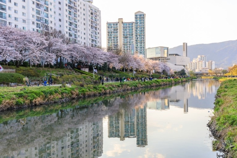 | 부산 봄꽃 여행지 추천 – 벚꽃부터 유채꽃까지! 부산은 바다와 함께 봄꽃을 즐길 수 있는 특별한 여행지이죠! 작년에는 3월 중순이 넘어가는 24~26일 사이가 아름다웠는데 올해는 봄꽃 소식이 조금씩 늦어진다는 예보가 있긴 하지만 그래도 3월 중순 이후에는 아름다운 벚꽃 소식을 들을 수 있지 않을까 합니다. 많은 분들이 기다리는 부산에서 꼭 가봐야 할 봄꽃 명소 5곳을 소개해 드립니다. 1.개금 벚꽃거리 – 현지인 추천 벚꽃 명소 개금 벚꽃거리는 개금동 일대를 따라 흐르는 벚꽃 가로수길로, 3월 말부터 4월 초까지 화려한 벚꽃이 거리를 수놓습니다. 도심 속에서도 벚꽃을 즐길 수 있어 부산 시민들에게 인기 있는 산책 코스입니다. 추천 포인트 차량 통행이 적어 여유롭게 벚꽃 산책 가능한곳으로 길게 이어진 벚꽃 터널이 인생샷 명소로 인기가 많은 곳이죠! 저녁에는 가로등 불빛과 함께하는 벚꽃 야경 감상 가능해 부산 벚꽃 데이트 코스로 아주 유명한 곳이랍니다. 개금 벚꽃거리 주변 즐길 거리 ● 개금시장: 벚꽃 나들이 후 시장에서 다양한 길거리 음식을 맛볼 수 있음 ● 개금공원: 가족 단위 방문객들에게 추천하는 피크닉 장소 2. 달맞이고개 – 부산에서 가장 유명한 벚꽃 명소달맞이고개는 해운대 근처에 위치한 벚꽃 명소로, 3월 말부터 4월 초까지 길 양옆으로 벚꽃이 만개하여 아름다운 터널을 형성하는 곳으로 아침부터 밤까지 많은 사람들이 찾는 부산 벚꽃 명소중의 명소이지요. 바다와 함께 어우러지는 벚꽃 풍경이 일인 곳으로 데이트를 즐기기에 너무 좋은 곳입니다. 추천 포인트 ● 벚꽃길 드라이브 코스로 인기 ● 해운대와 가까워 함께 여행하기 좋음 ● 인근에 감성적인 카페와 갤러리 많음 3. 삼익비치아파트– 아파트 단지를 따라 벚꽃 천국이 펼쳐지는 곳 부산 남천동에 위치한 삼익비치아파트는 봄철 벚꽃 명소로 유명합니다. 아파트 단지 내 도로를 따라 늘어선 벚나무들이 만개하면, 마치 벚꽃 터널을 형성하여 방문객들에게 환상적인 풍경을 선사하면서 부산을 여행하는 많은 사람들이 몰리는 곳이지요. 낮에도 아름답지만 밤 풍경도 못지않게 아름다운 곳입니다. 이곳은 차량 통행이 비교적 적어 조용한 분위기 속에서 벚꽃을 감상할 수 있으며, 광안리 해변과도 인접해 있어 벚꽃 구경 후 바다 산책을 즐기기에 좋습니다. 또한, 삼익비치아파트의 벚꽃길은 사진 촬영 명소로도 인기가 높습니다. 특히 상가 계단에서 찍는 사진은 '인생 사진'을 남기기에 최적의 장소로 알려져 있습니다 ● 벚꽃이 만개하는 시기에는 많은 사람들이 찾는 만큼, 방문 시 주변 주민들을 배려하여 소음을 줄이고, 안전한 장소에서 사진을 촬영하는 등 에티켓을 지키는 것이 중요한 곳인데요. 많은 사람들이 눈살을 찌뿌리는 행동을 하시는 분들이 계속 보이는 곳이기 때문에 서로 서로 조심하는 예의가 필요하답니다. ● 삼익비치아파트의 벚꽃길은 부산의 봄을 만끽할 수 있는 숨은 명소로, 도심 속에서 자연의 아름다움을 느끼기에 안성맞춤인 장소입니다. 4. 감천문화마을 벚꽃 – 부산 시민들의 숨은 벚꽃 힐링 스팟 부산의 감천문화마을은 알록달록한 집들이 계단식으로 늘어선 독특한 풍경으로 유명합니다. 특히 봄이 되면 벚꽃이 만개하여 마을의 색채와 어우러져 더욱 아름다운 장관을 연출합니다. 감천문화마을을 방문하신다면, 마을 내 다양한 예술 작품과 벽화를 감상하며 산책하는 것을 추천합니다. 벚꽃이 만개한 시기에 방문하면 마을의 예술적 분위기와 봄의 정취를 동시에 느낄 수 있습니다. ● 또한, 마을 내 위치한 카페 '계단위푸른집'은 벚꽃이 피는 계절에 특별한 분위기를 제공합니다. 이곳에서 커피 한 잔과 함께 벚꽃을 감상하며 힐링의 시간을 보낼 수 있는 곳이죠! ● 벚꽃이 피는 시기에는 방문객이 많아질 수 있으므로, 평일이나 이른 아침 시간을 활용하면 보다 여유롭게 마을을 둘러볼 수 있습니다. 방문 시 마을 주민들을 배려하여 조용히 관람하고, 쓰레기를 되가져가는 등 기본적인 에티켓을 지키는 것이 중요한 곳이니 더욱 신경을 쓰셔서 불편을 드리는 행동은 삼가하시기를 바랍니다. 감천문화마을의 봄은 벚꽃과 예술이 어우러진 특별한 경험을 선사합니다. 올봄, 감천문화마을에서 잊지 못할 아름다운 추억을 만들 수 있는 멋진 시간을 가져 보시기를 바랍니다. 5. 부산온천천 벚꽃 – 화사한 벚꽃 터널과 유채꽃 부산의 온천천은 봄이 되면 벚꽃이 만개하여 아름다운 산책로를 제공합니다. 온천천을 따라 늘어선 벚나무들은 화사한 꽃터널을 형성하며, 방문객들에게 특별한 봄의 정취를 선사합니다. 온천천 벚꽃길은 특히 산책과 자전거 타기에 최적화된 코스로, 가족, 연인, 친구들과 함께 여유로운 시간을 보내기에 안성맞춤입니다. 벚꽃이 만개한 시기에는 온천천 카페거리 주변으로 다양한 카페와 음식점이 있어, 산책 후 휴식을 취하며 봄날의 여유를 만끽할 수 있습니다 ● 또한 온천천은 벚꽃뿐만 아니라 유채꽃도 함께 피어 더욱 다채로운 풍경을 자랑합니다. 노란 유채꽃과 분홍빛 벚꽃이 어우러진 모습은 사진 촬영을 즐기는 이들에게 인기 있는 장소입니다 ● 