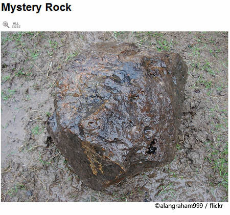 한 미국인이 현지 일자 3월 28일 자신의 뒷마당에서 발견했다는 ‘미스터리 돌덩어리’가 해외 인터넷에 떠올랐다. 대나무를 심기 위해 뒷마당을 파고 있었는데 뭔가 크고 딱딱한 것이 있어 파내 살펴보니 크기는 농구공 정도의 돌이었다. 그런데 대단히 무거워 들기가 힘들었다고 한다. 또 물로 씻어보니 군데군데 녹슨 철의 모습이었으며 자석을 대니 붙기도 했다. 비슷한 돌덩어리는 부근에서 또 발견되었다. 더 길쭉하고 작았지만 성질은 비슷했다. 해외 네티즌들은 운석일 것이라며, 뒷마당에서 횡재를 한 네티즌에게 ‘축하’를 보내고 있다. 2010.03.30