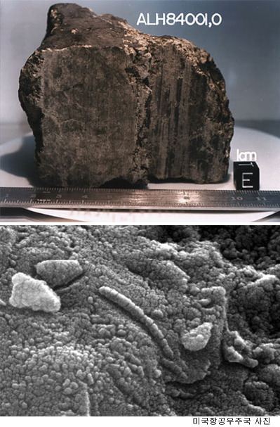 30일 학술지 ‘네이처’ 온라인과 영국 ‘더 타임스’ 온라인 등을 장식한 뉴스. 1996년 과학자들은 남극 대륙에 떨어진 화성 운석에 생명체 화석이 들어 있는지 여부를 놓고 갑론을박을 벌인 바 있다. ALH 84001라 명명된 이 운석의 표층 아래에 박테리아의 흔적이 존재하며 이는 13,000년 전 운석이 지구에 떨어질 당시부터 있었던 것이라는 주장이 제기되었다. 당시 미국 대통령이었던 빌 클리턴도 관심을 표명하는 공식 발언을 한 바 있다. 그러나 반박도 빗발쳤다. 1984년 발견된 운석에 존재하는 ‘박테리아 화석 모양’은 비생물학적인 것이라는 게 반박의 논리.