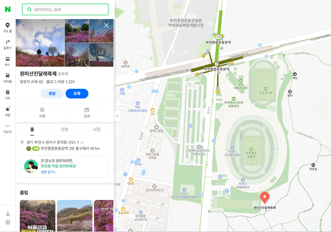 교통 : 지하철 7호선, 서해선 부천종합운동장역 2번출구 내에서 만나서 같이 갑니다.