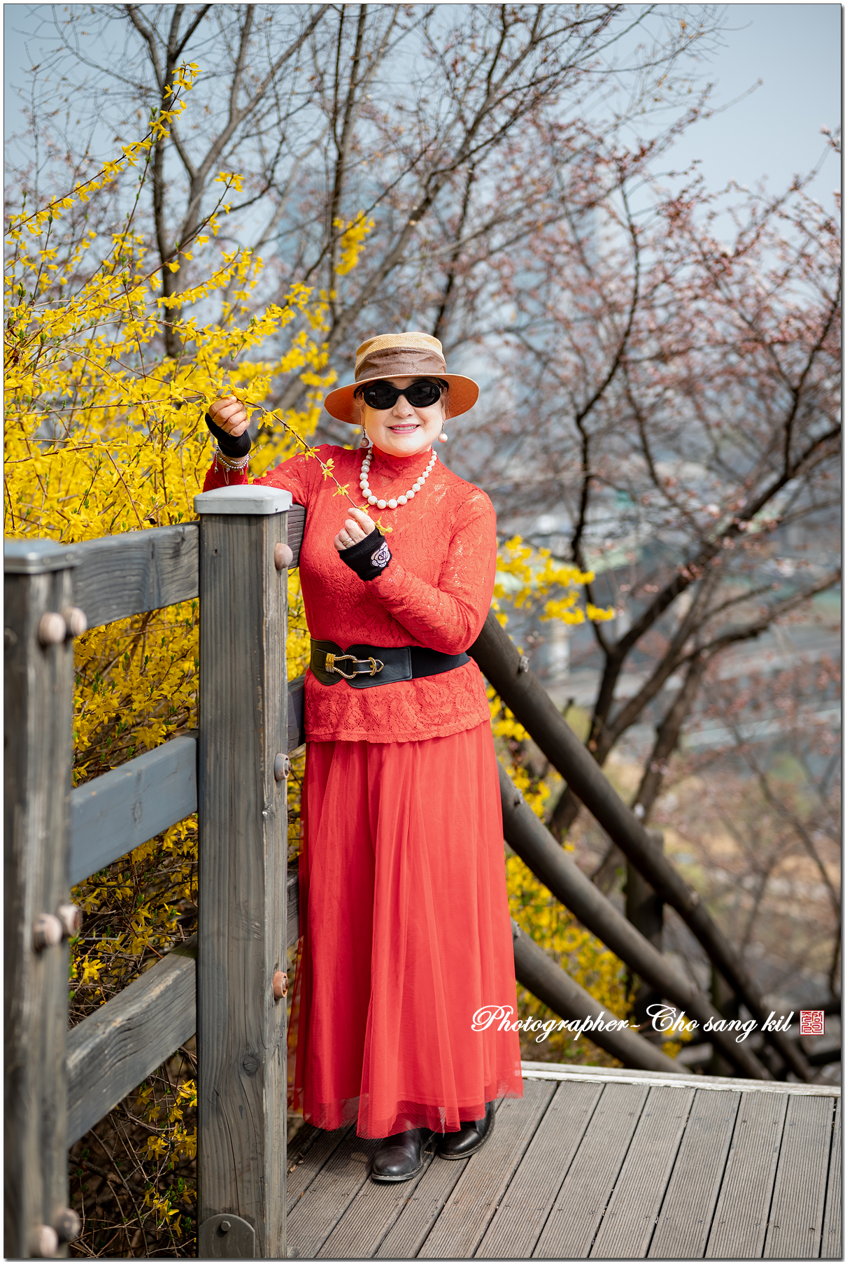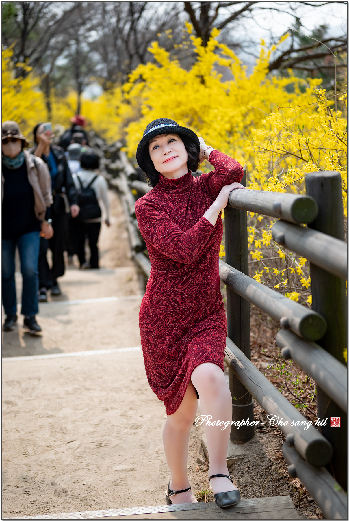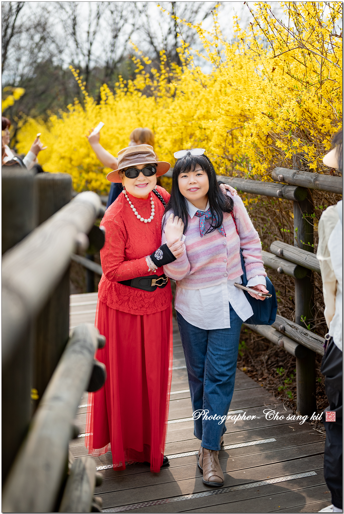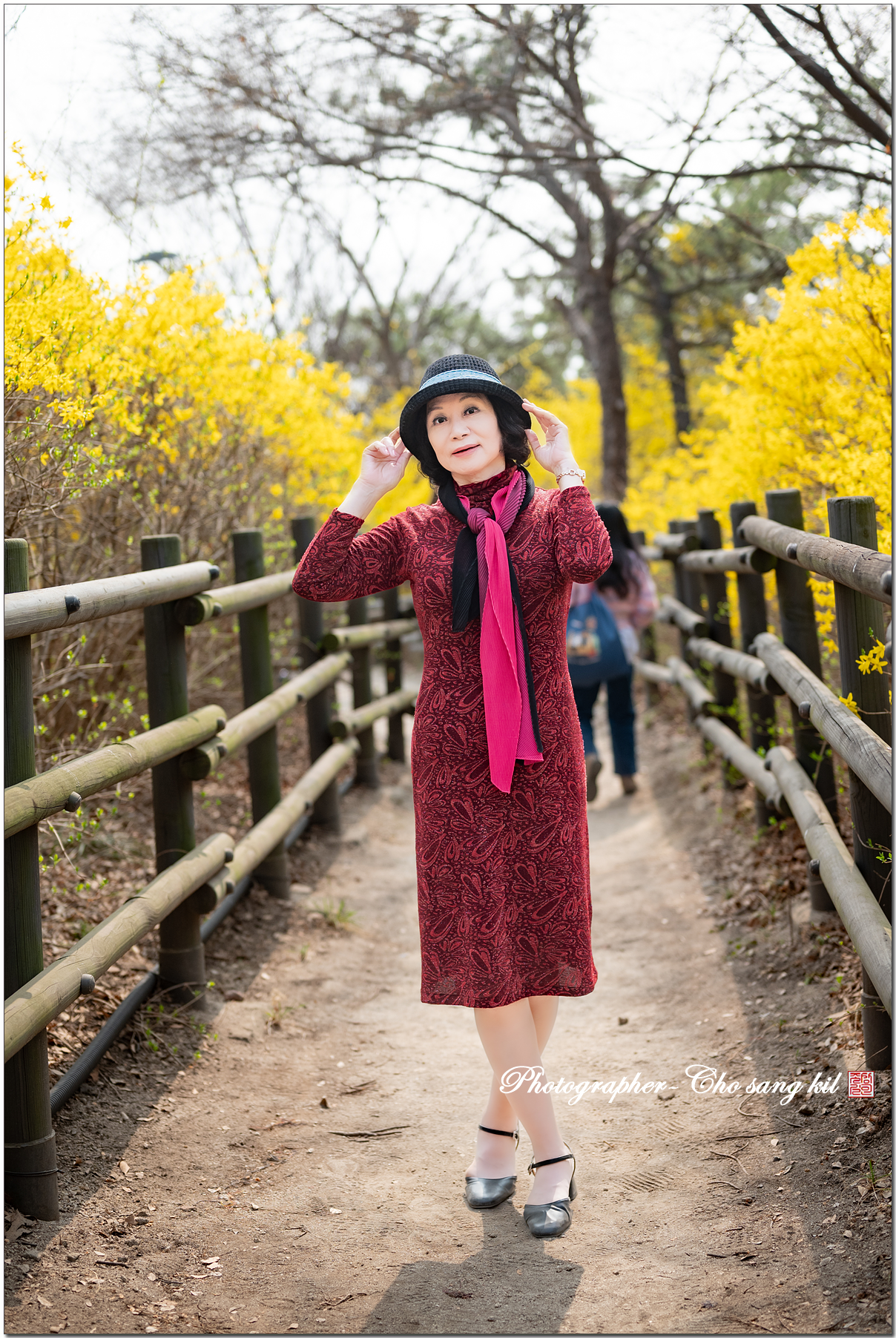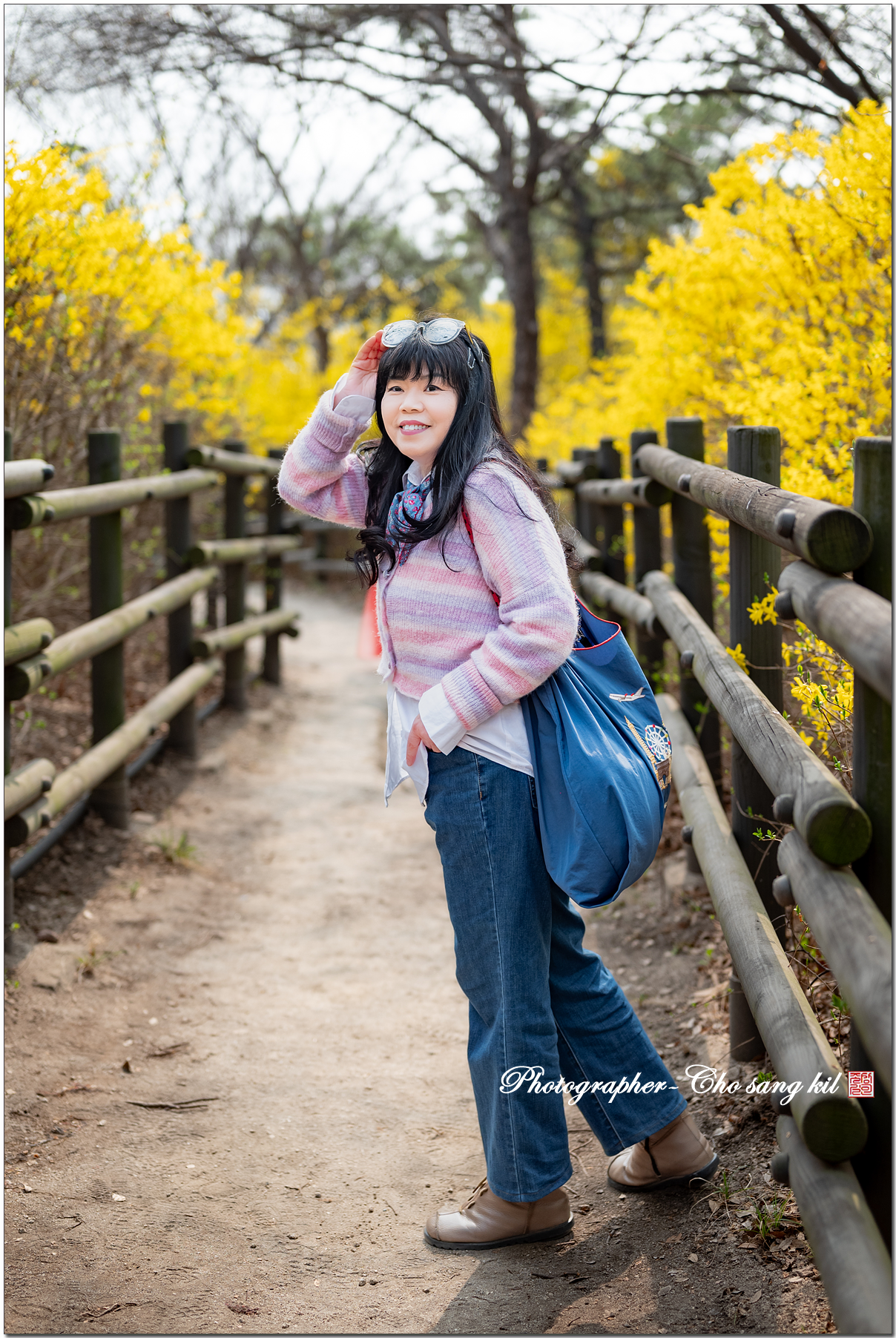 노오란 개나리꽃 길에서