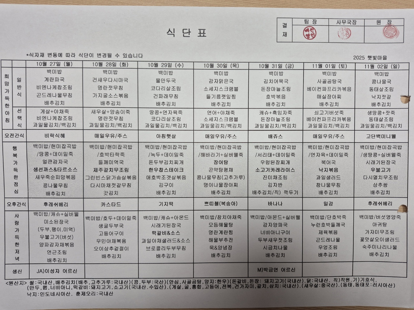 2025.10.27~11.02식단표 작성자햇빛마을|작성시간25.11.10|조회수5 목록 댓글 0 글자크기 작게가 글자크기 크게가 다음검색 현재 게시글 추가 기능 열기 북마크 공유하기 신고 센터로 신고 댓글 댓글 0 댓글쓰기 답글쓰기 댓글 리스트