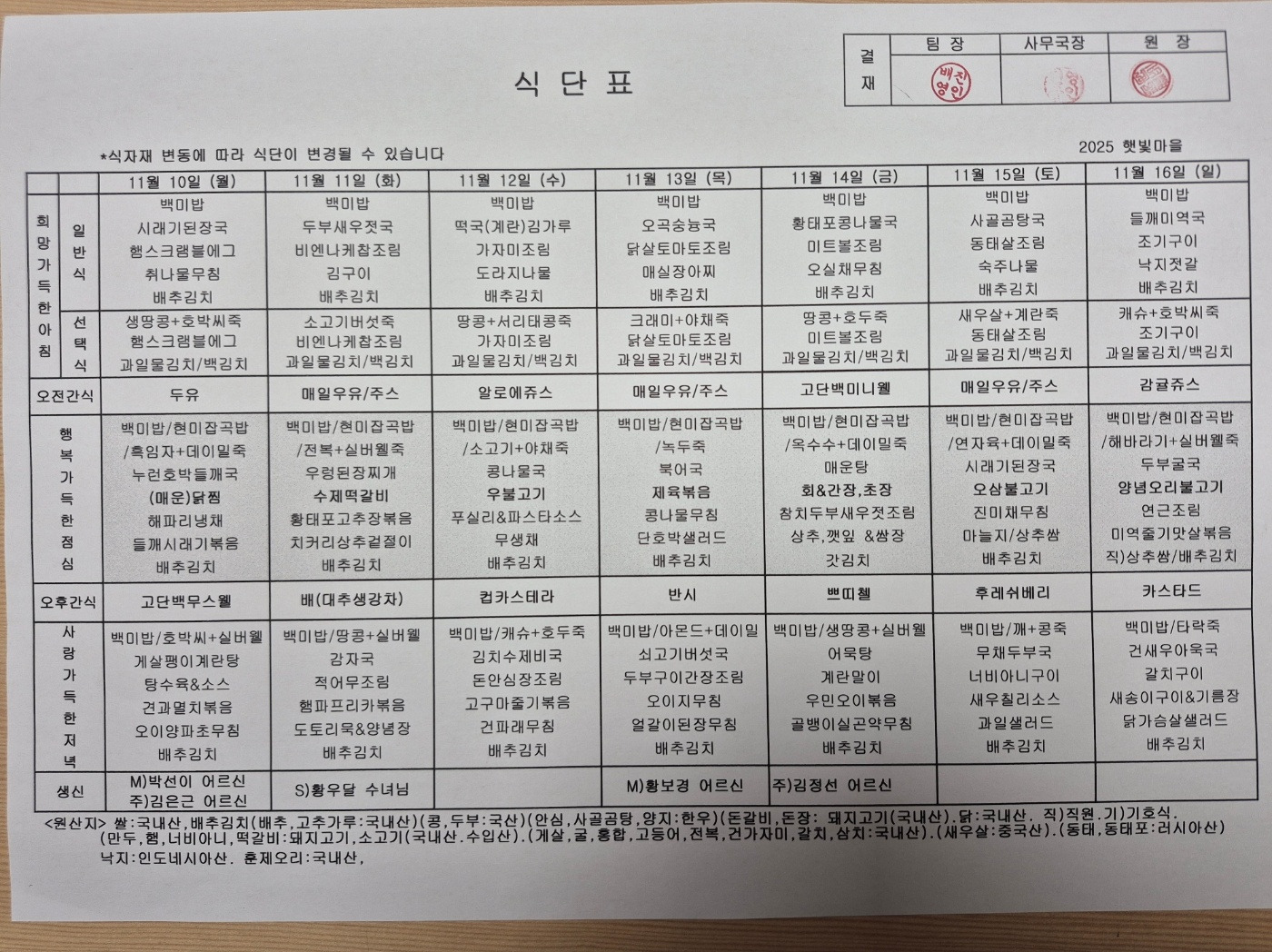 2025.11.10~11.16식단표 작성자햇빛마을|작성시간25.11.10|조회수7 목록 댓글 0 글자크기 작게가 글자크기 크게가 다음검색 현재 게시글 추가 기능 열기 북마크 공유하기 신고 센터로 신고 댓글 댓글 0 댓글쓰기 답글쓰기 댓글 리스트