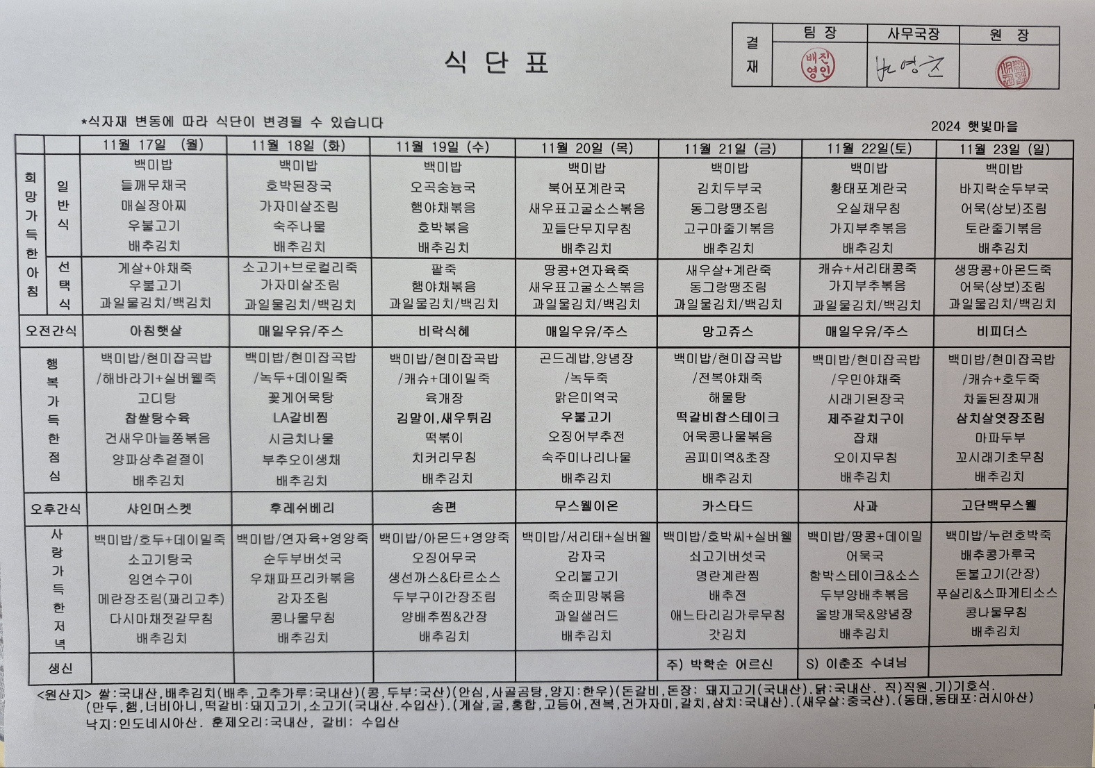 2025.11.17~11.23 식단표 작성자햇빛마을|작성시간25.11.20|조회수5 목록 댓글 0 글자크기 작게가 글자크기 크게가 다음검색 현재 게시글 추가 기능 열기 북마크 공유하기 신고 센터로 신고 댓글 댓글 0 댓글쓰기 답글쓰기 댓글 리스트
