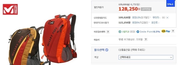 새상품 정품 밀레 등산 배낭가방 팝니다