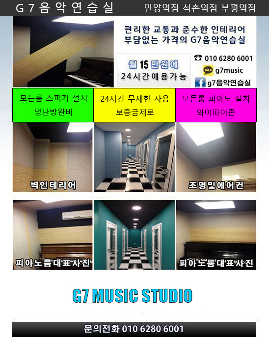 [[[ 인천 부평역 / 잠실 석촌역 / 경기 안양역 3분에 위치한 'G7음악연습실' ]]]