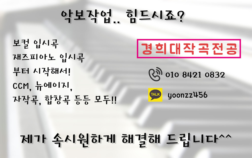 그리고 추가로, 악보에 간단한 코드, 멜로디 편곡이 필요한 경우도 문제없이 해드립니다^^